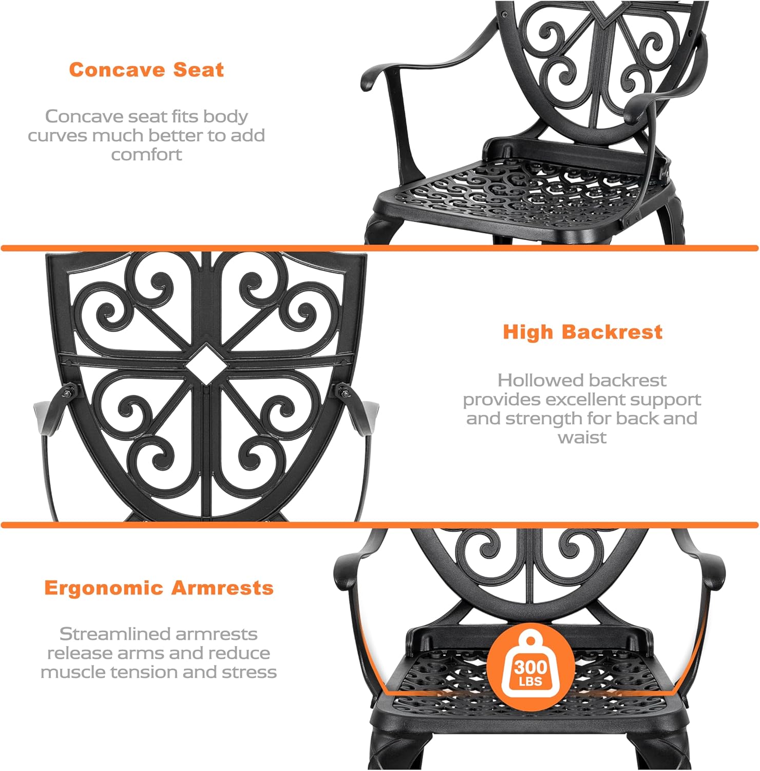 - Powder-Coated Frame: The frame made of high-quality cast aluminum with powder coating protects the bistro set from getting rusty from all weather and ensures its durability for years to come.