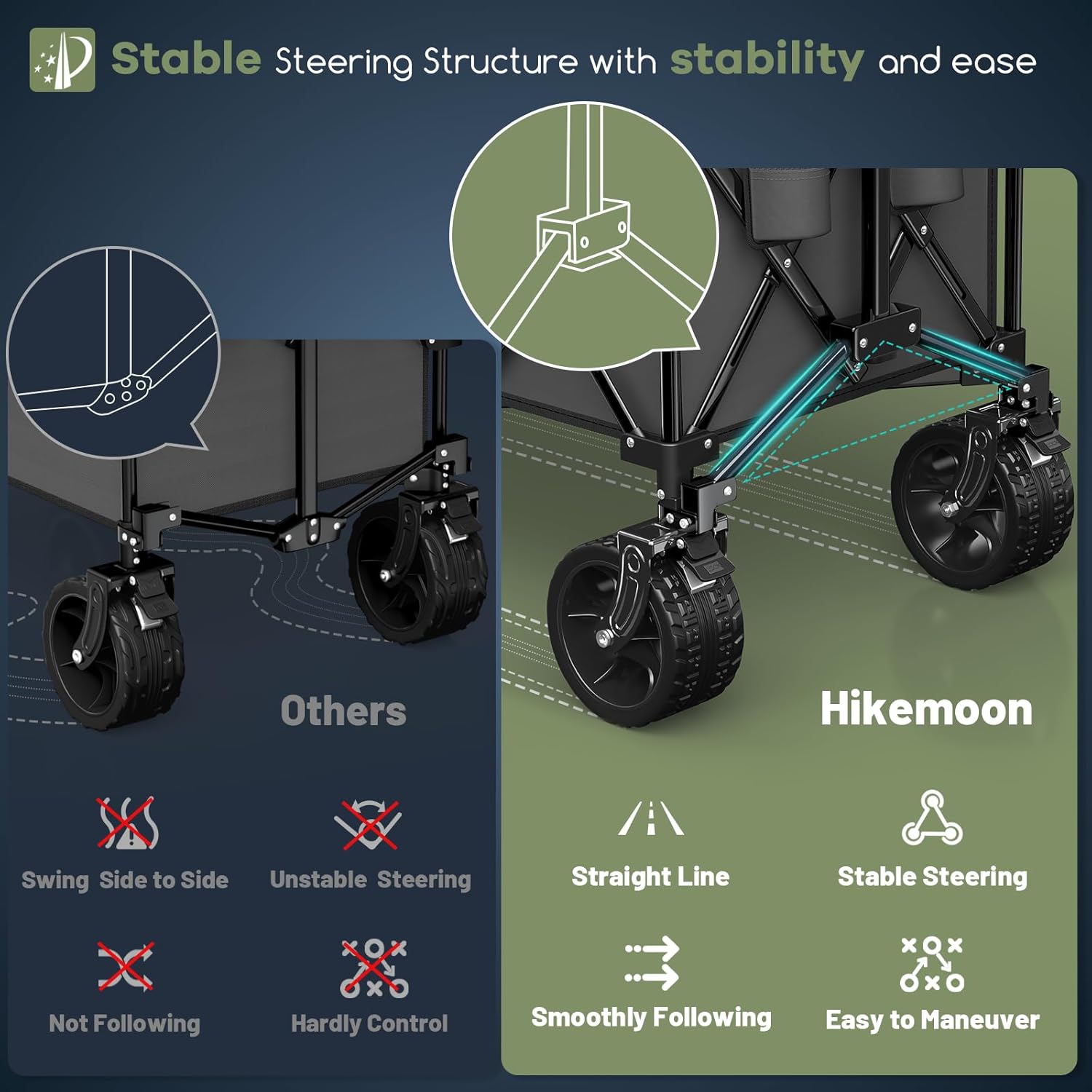 - ใ๐๐ซ๐จ๐๐ฎ๐๐ญ ๐๐ข๐ณ๐, ๐๐ข๐๐ ๐๐จ๐๐ค๐๐ญ ๐๐ง๐ ๐๐ฎ๐ฉ ๐๐จ๐ฅ๐๐๐ซ๐ฌใ: Hikemoon collapsible wagon cart ๐ฎ๐ง๐๐จ๐ฅ๐๐๐ ๐ฌ๐ข๐ณ๐: 46.06"D x 22.64"W x 24.17"H, ๐๐จ๐ฅ๐๐๐ ๐ฌ๐ข๐ณ๐: 12.59"D x 8.98"W x 24.17"H, ๐ฐ๐ก๐๐๐ฅ ๐ฌ๐ข๐ณ๐: 7" x 4", ๐๐ฒ๐ถ๐ด๐ต๐ ๐ผ๐ณ ๐๐ฎ๐ป๐ฑ๐น๐ฒ ๐๐ผ ๐๐ฟ๐ผ๐๐ป๐ฑ: 42.91". Features one Oxford side pocket and two cup holders for convenient storage of drinks and personal items.