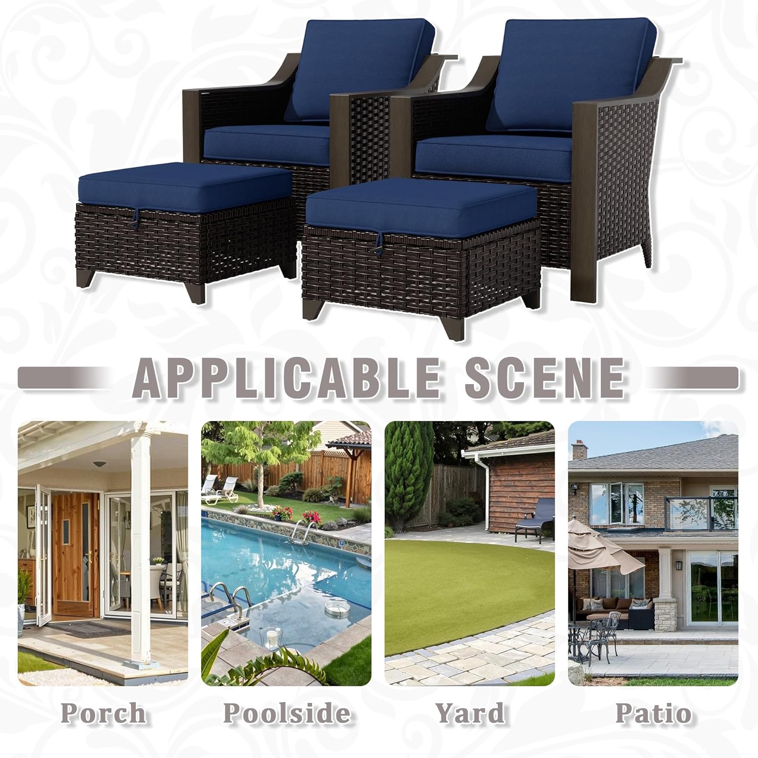 - Versatile Outdoor Use – Ideal for decks, patios, gardens, balconies, or even indoor spaces. Mix-and-match with optional ottomans for a complete setup.