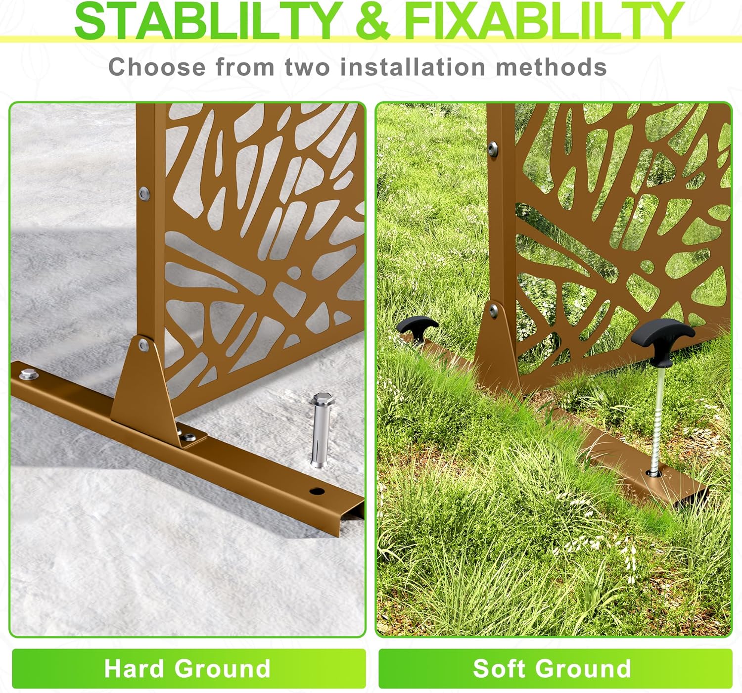 - 【Robust Metal Build】The metal privacy screen boasts a robust construction crafted from high-quality galvanized steel. Designed to endure the rigors of outdoor elements, its sturdy build guarantees prolonged durability.