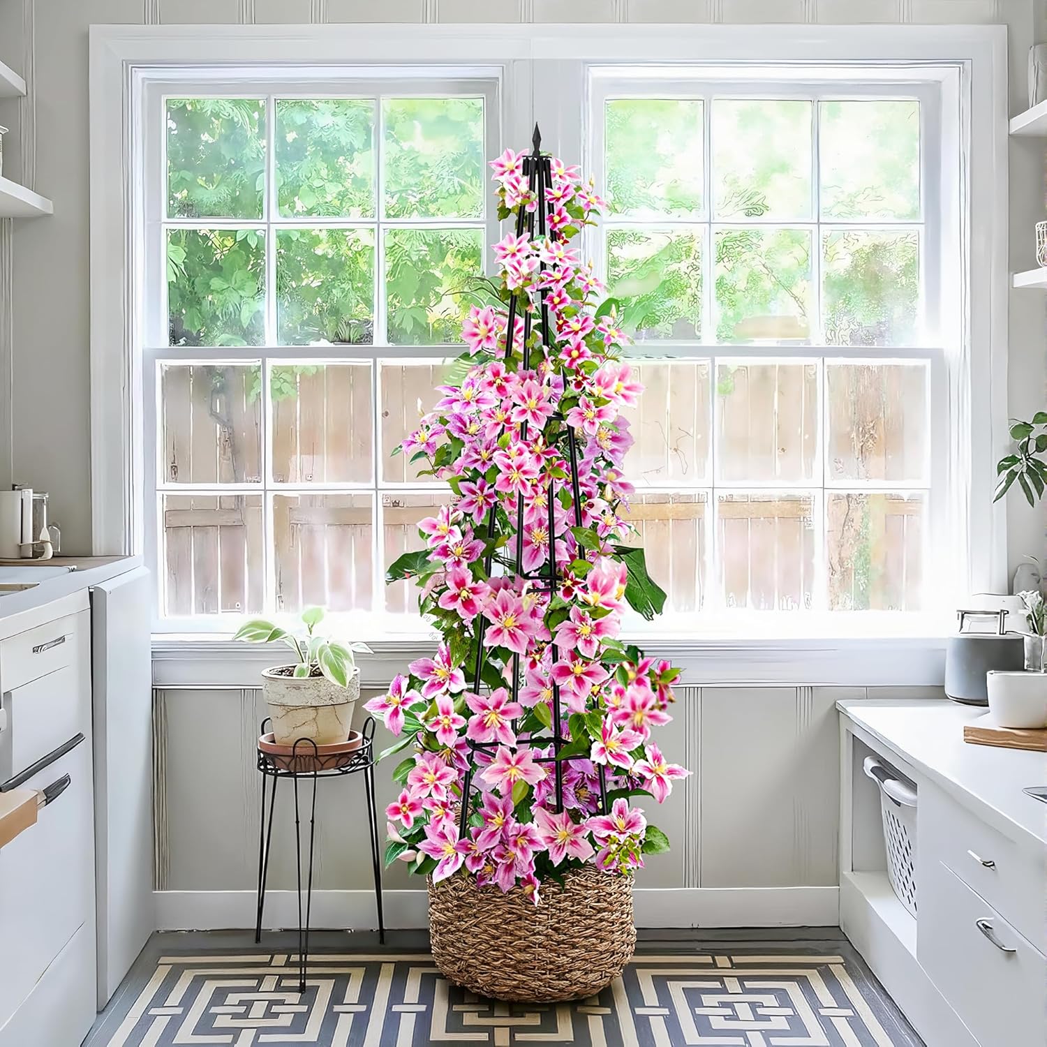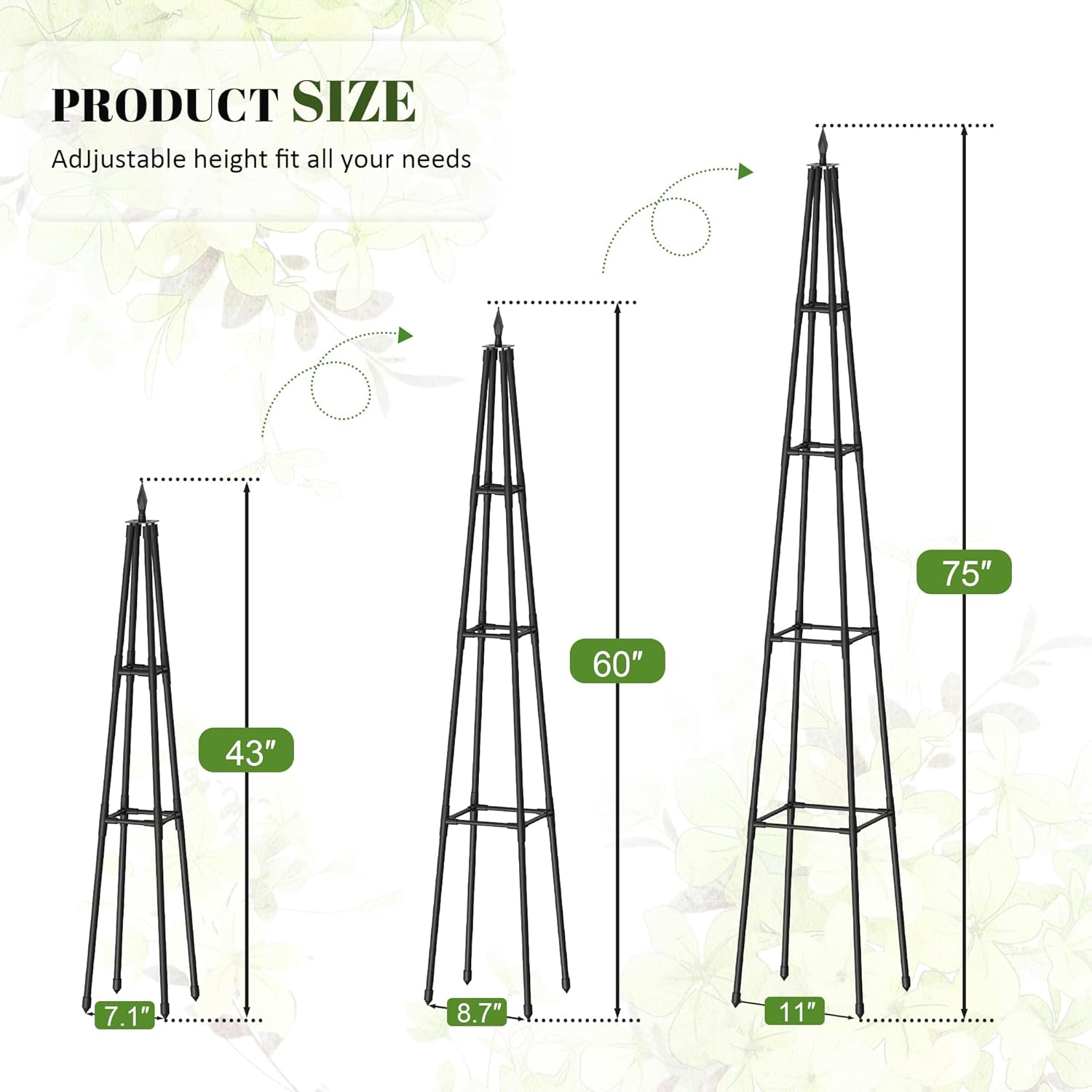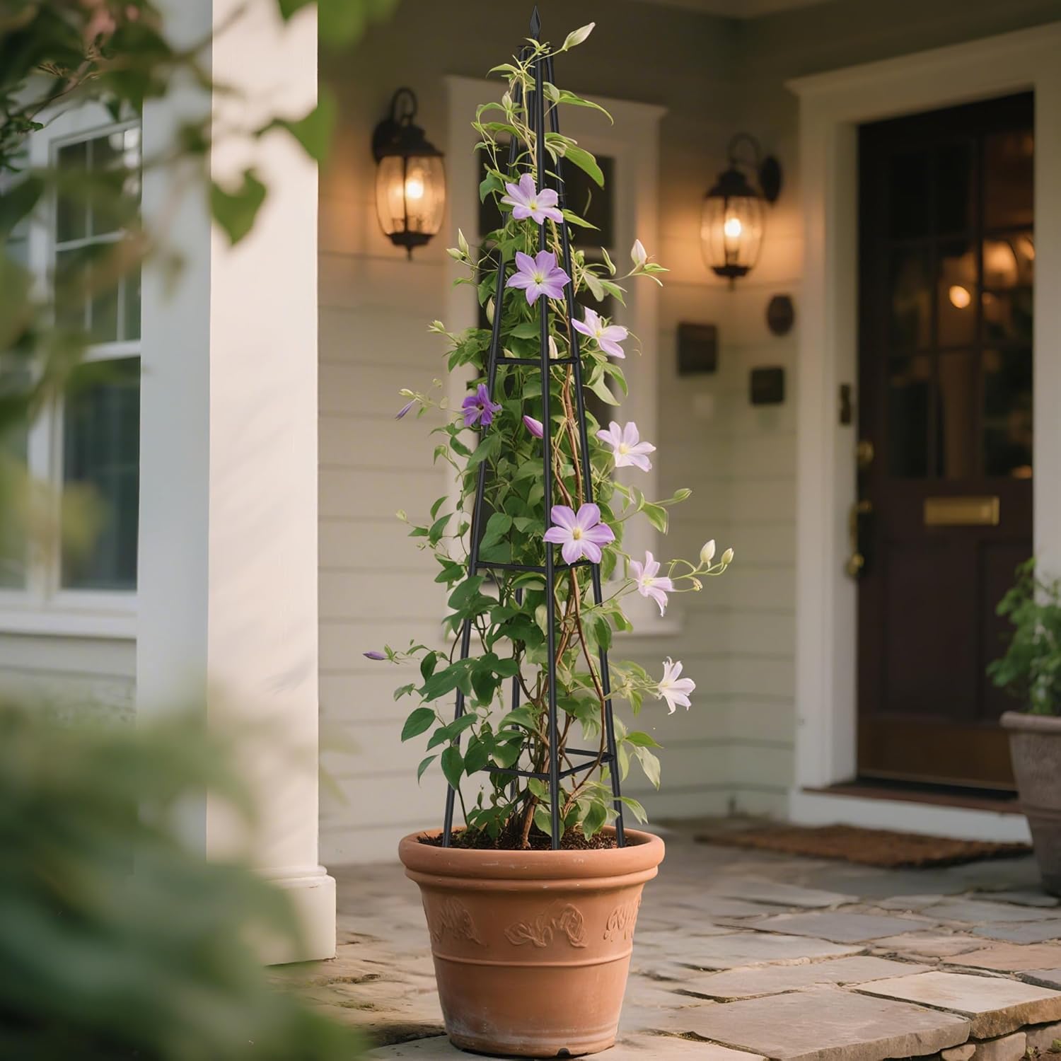 - Supports Heavy Climbers & Vining Plants :Obelisk trellis can handle the weight of vigorous climbers like roses, clematis, beans, or cucumbers, preventing plants from sprawling on the ground.