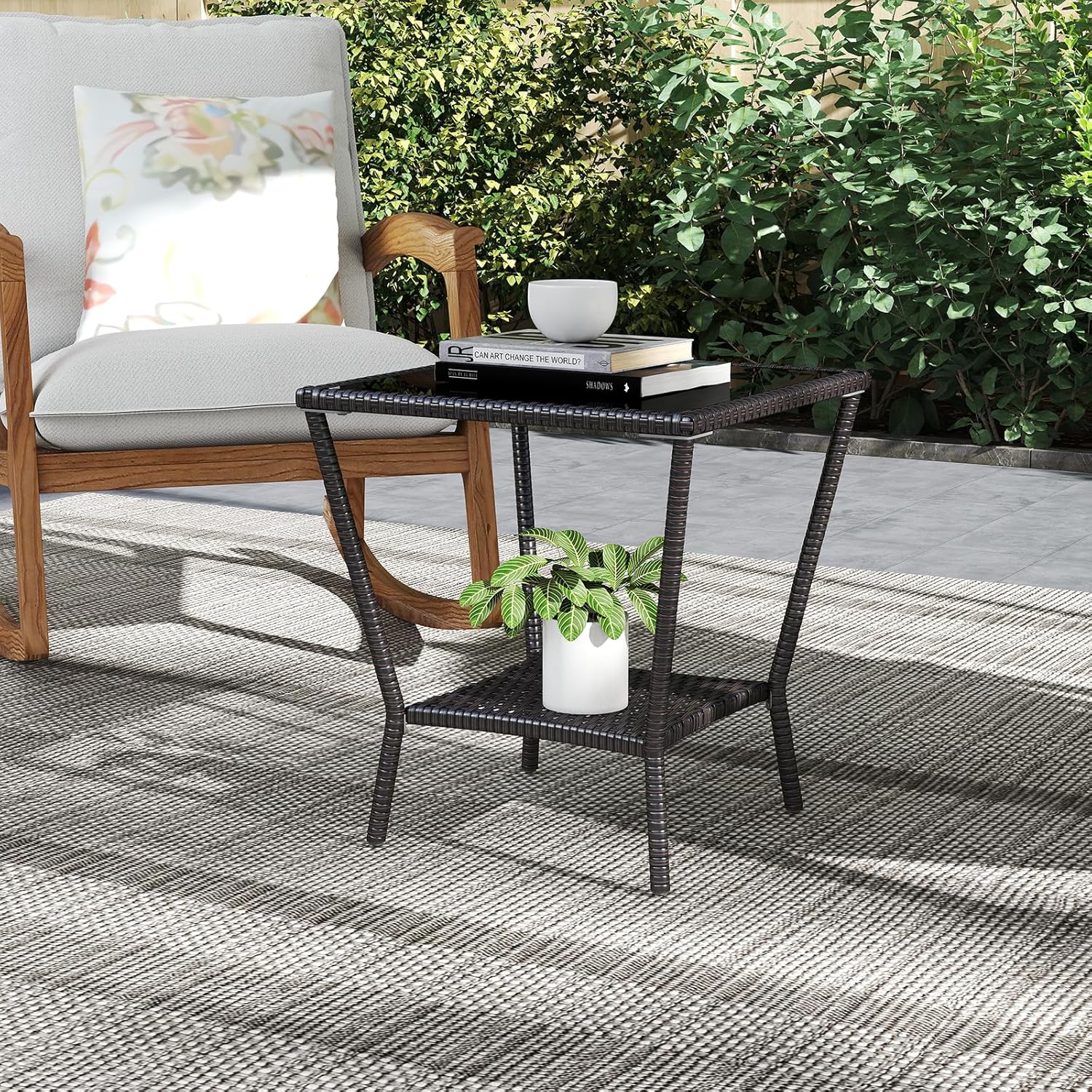 Outdoor Small Patio Table - PE Rattan Coffee Table, Wicker Side Table for Patio, Balcony & Porch, Durable & Iron Frame (1, Black Brown)