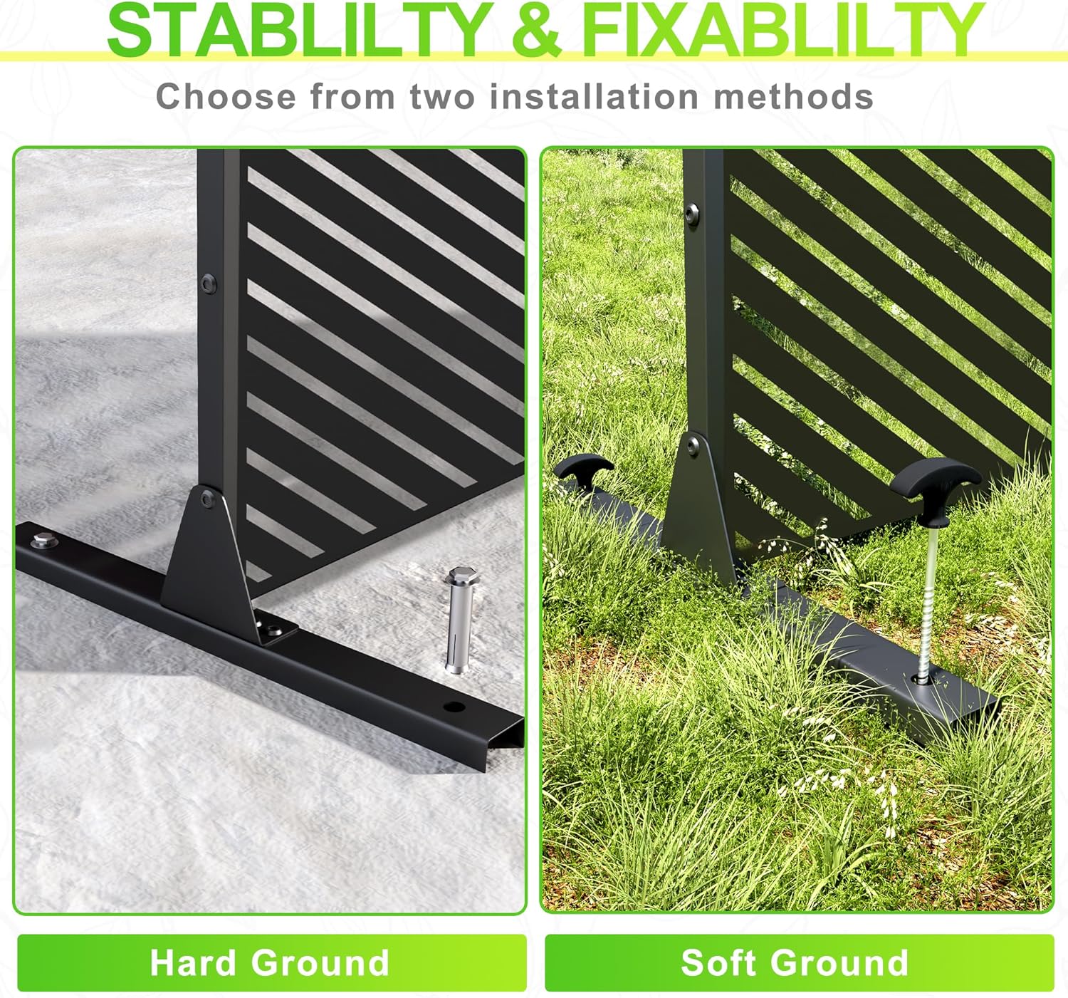 - 【Robust Metal Build】The metal privacy screen boasts a robust construction crafted from high-quality galvanized steel. Designed to endure the rigors of outdoor elements, its sturdy build guarantees prolonged durability.