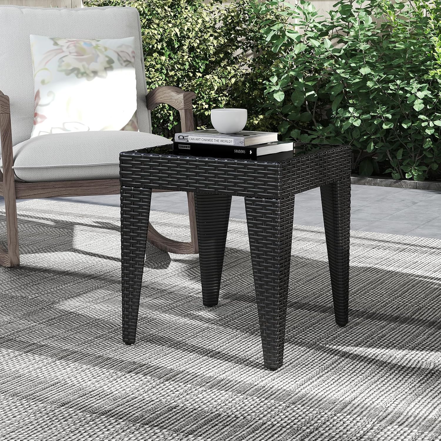 Outdoor Small Patio Table - PE Rattan Coffee Table, Wicker Side Table for Patio, Balcony & Porch, Durable & Iron Frame (1, Rattan Black)