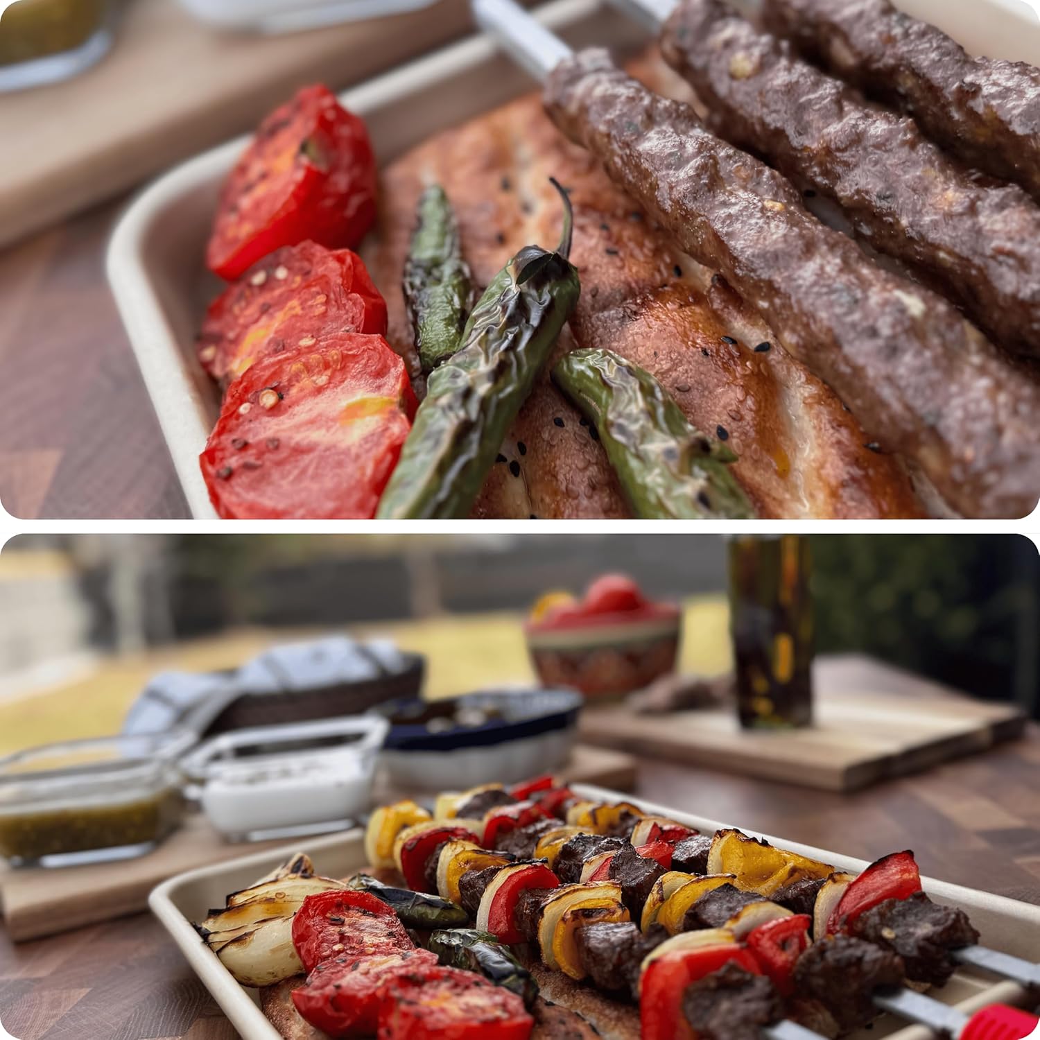 - ๐๐๐ฎ๐น ๐ฆ๐ธ๐ฒ๐๐ฒ๐ฟ ๐๐ผ๐บ๐ฝ๐ฎ๐๐ถ๐ฏ๐ถ๐น๐ถ๐๐: Accommodates both square skewers for traditional seekh kabobs and flat skewers for a variety of meats and vegetables.โ