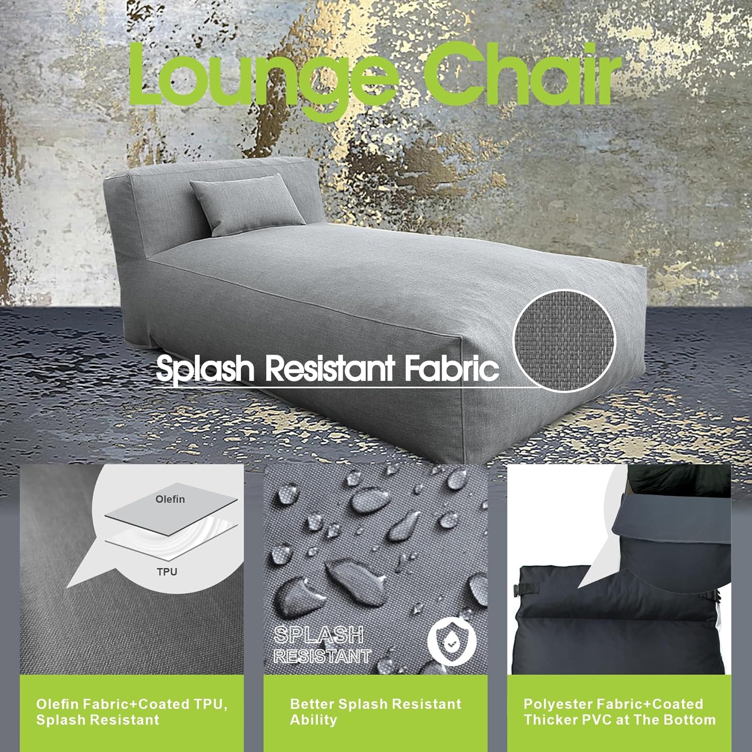 - Oversized Outdoor Bean Bag Lounger for Relaxation & Sunbathing - Stretch out and unwind with this large outdoor bean bag lounger chair, perfect for sunbathing, tanning, or poolside lounging. Designed with generous dimensions (70.87" L x 35.04" W), it functions as a patio daybed, chaise lounge, or outdoor futon, bringing resort-style comfort to your deck, yard, or beach house.