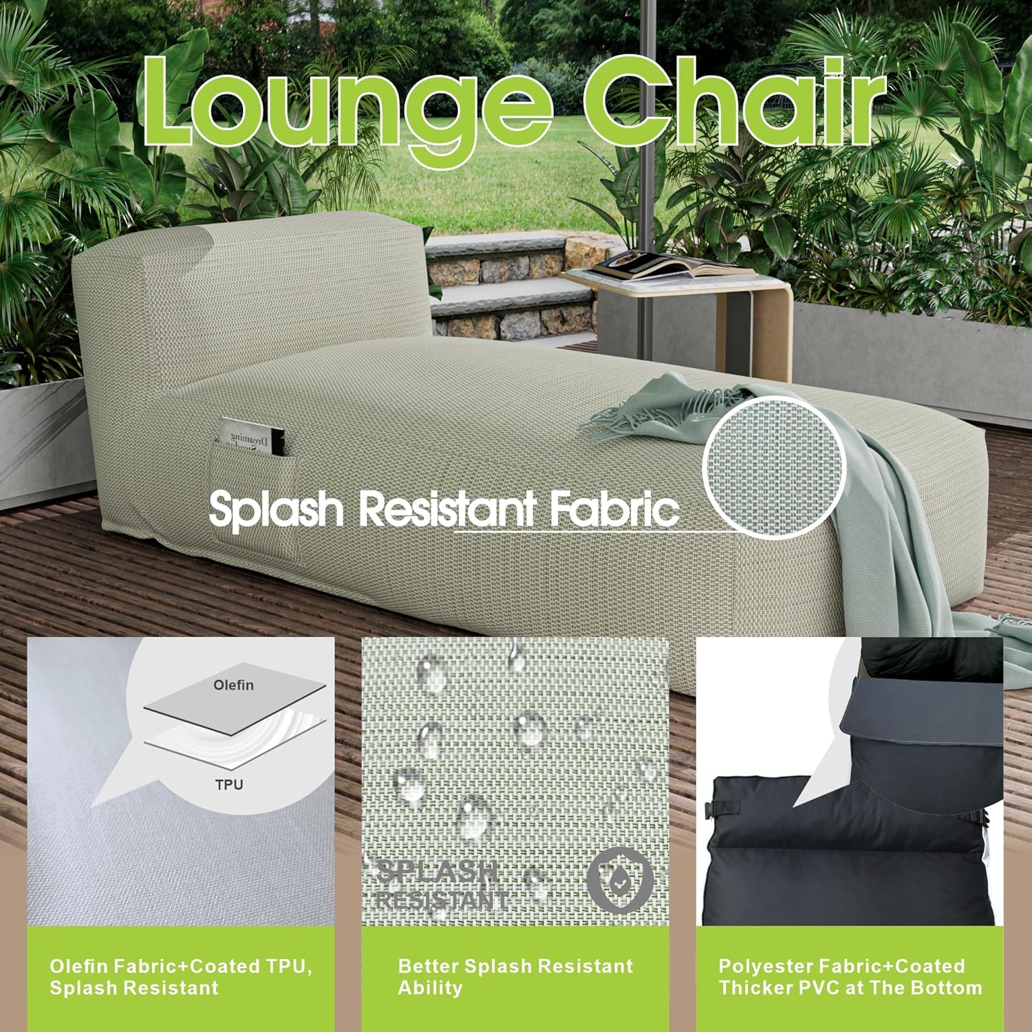 - Oversized Outdoor Bean Bag Lounger for Relaxation & Sunbathing - Stretch out and unwind with this large outdoor bean bag lounger chair, perfect for sunbathing, tanning, or poolside lounging. Designed with generous dimensions (70.87" L x 35.04" W), it functions as a patio daybed, chaise lounge, or outdoor futon, bringing resort-style comfort to your deck, yard, or beach house.