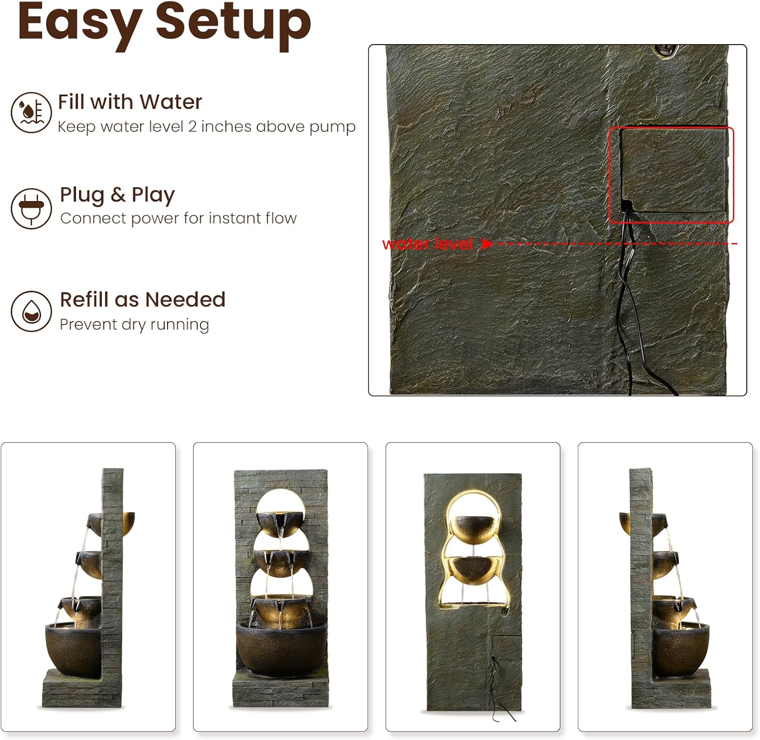 - PRE-SALE,AFTER-SALE - The garden fountain is the perfect addition to your home decor. If you have any questions about the outside water fountain,such as product consultation,technical support,missing parts,damage,etc.,we have a professional team to serve you and solve it.