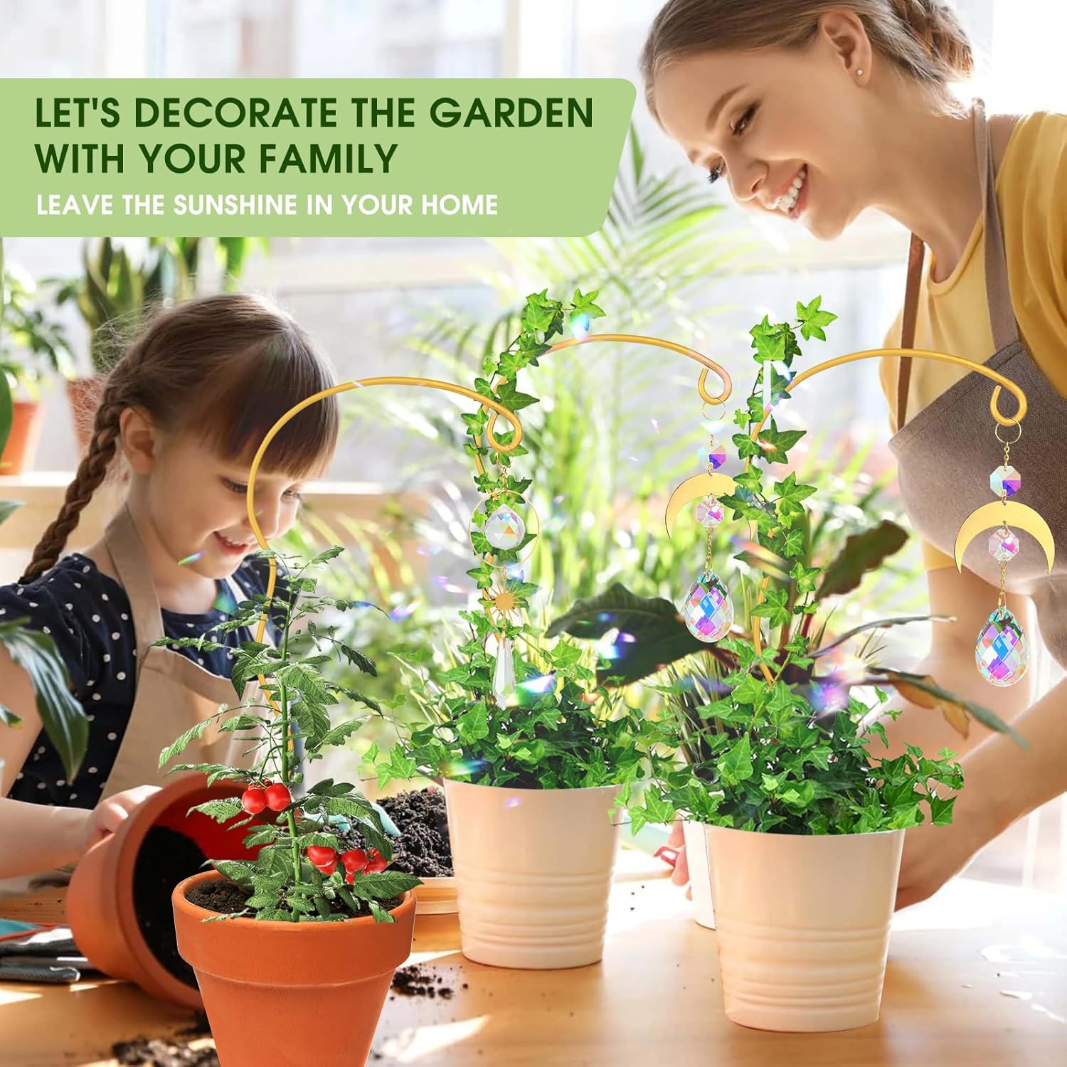 - Plant Gifts: Looking for a thoughtful gift for plant lover? A small grid with colorful crystal sun catchers is the perfect gift for plant lover. It is not just a plant accessory, but also an expression of love for nature, making it a wonderful addition to any indoor plant collection.