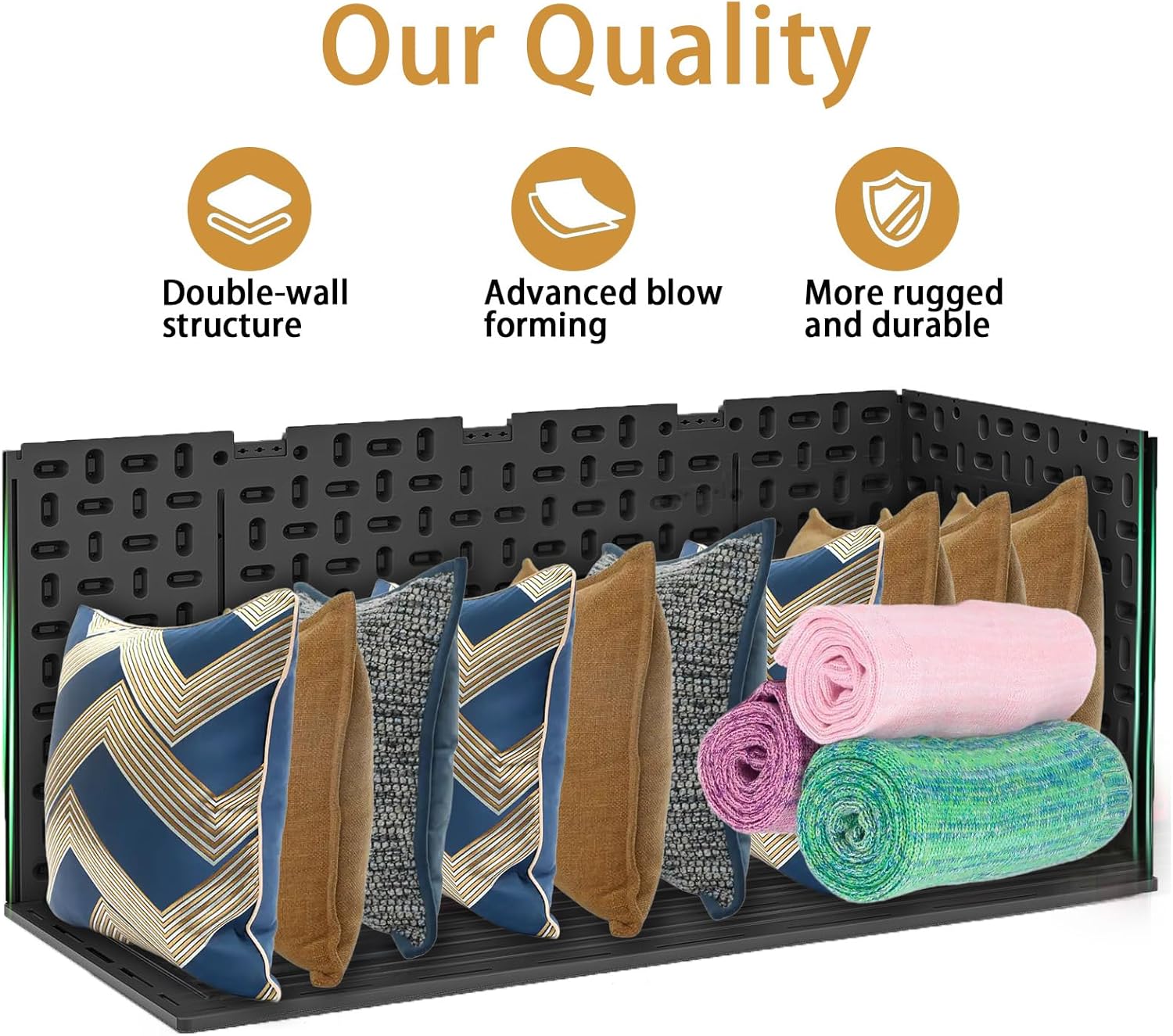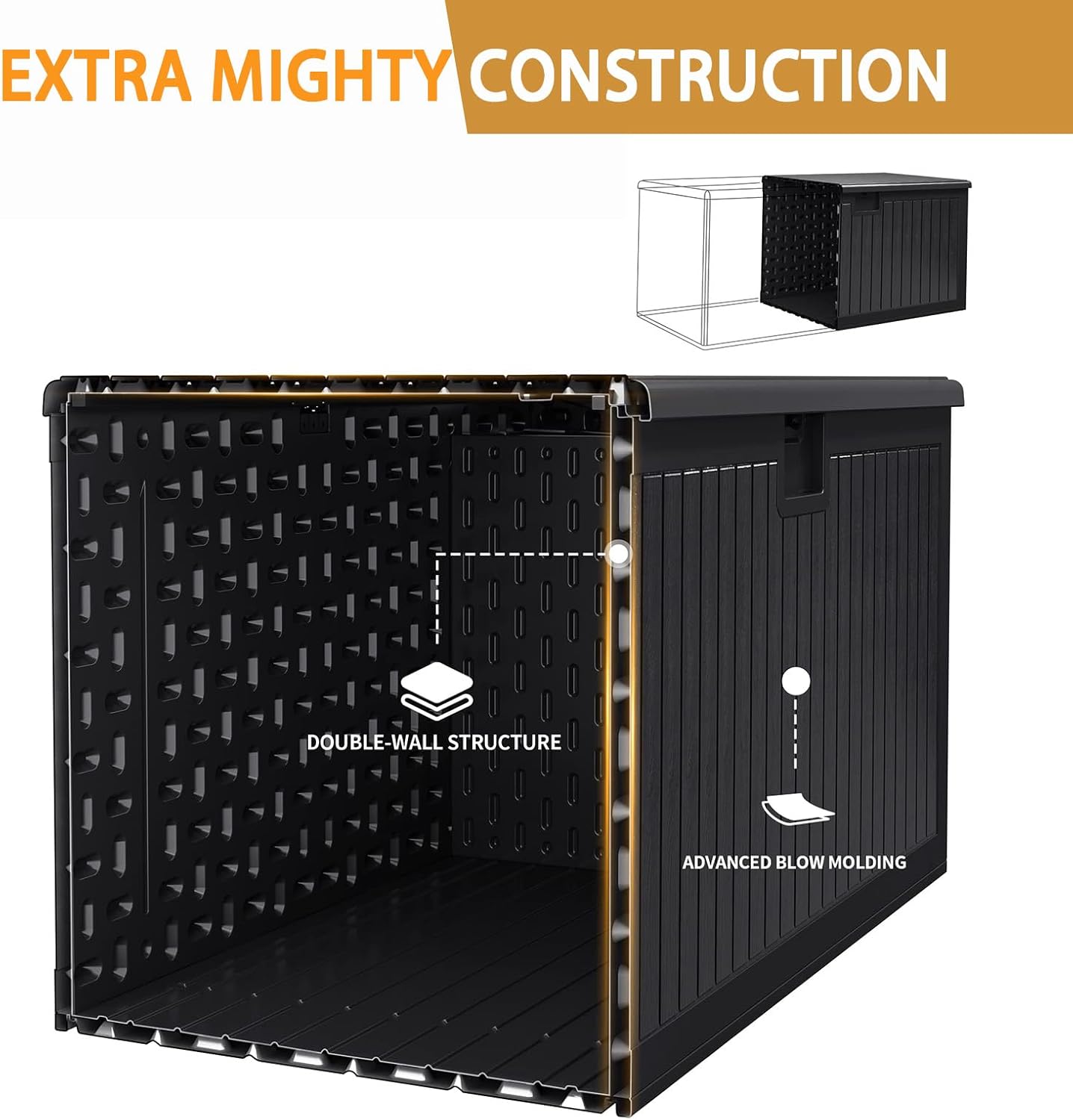 - Long Time Use Storage Box: Double layers thick resin material, manufactured via injection modeling process, one piece modeling, aging testing over 3 years. Our thick resin panel will not warp or bow as the plastic one which was blow modeling