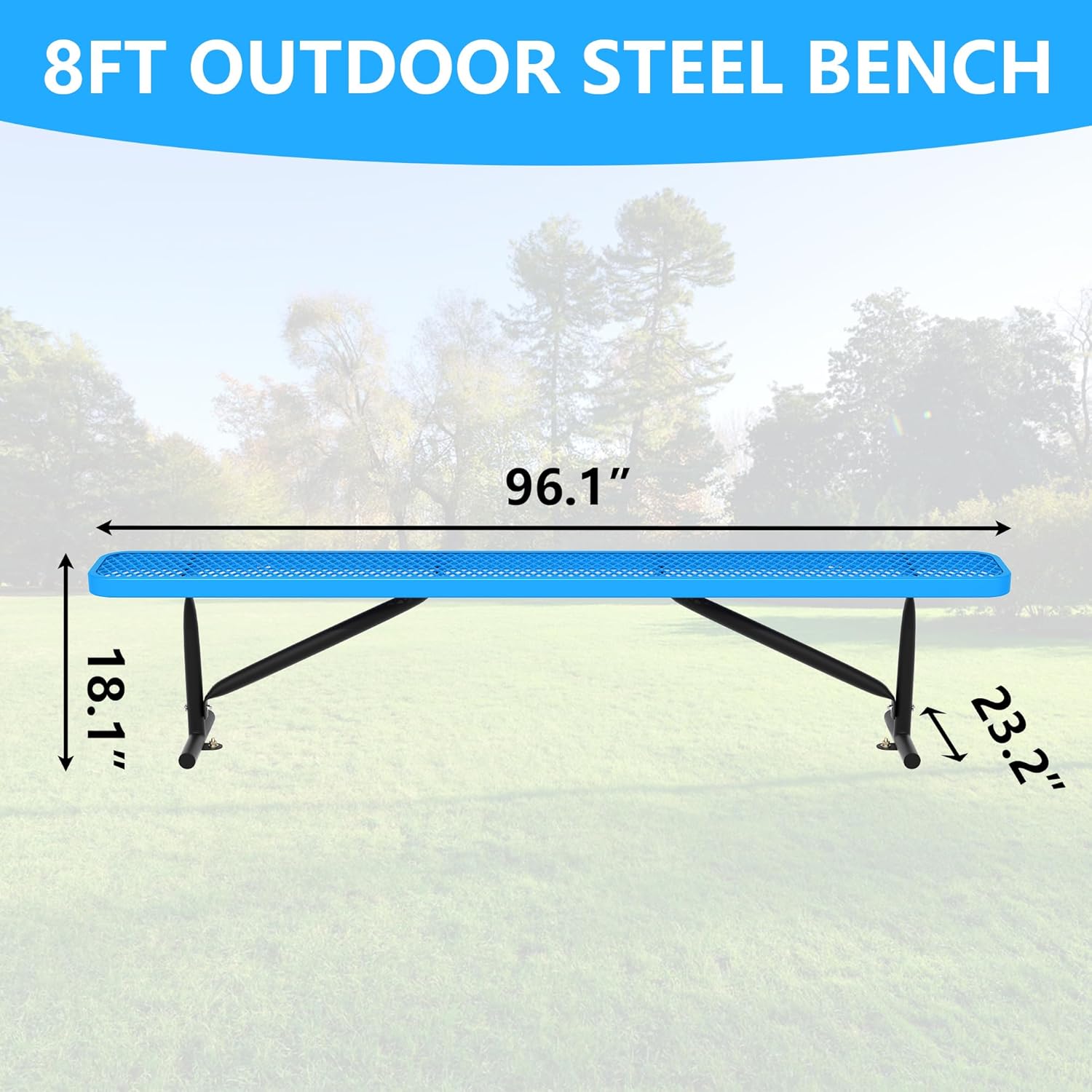 96" L Outdoor Metal Benches, Heavy Duty Garden Park Bench for Outside, Expanded Metal, Commercial Benches Mesh Bench for Shopping Mall, Store, Lawn, Park, Patio, Deck, Garden (Blue, 8FT)
