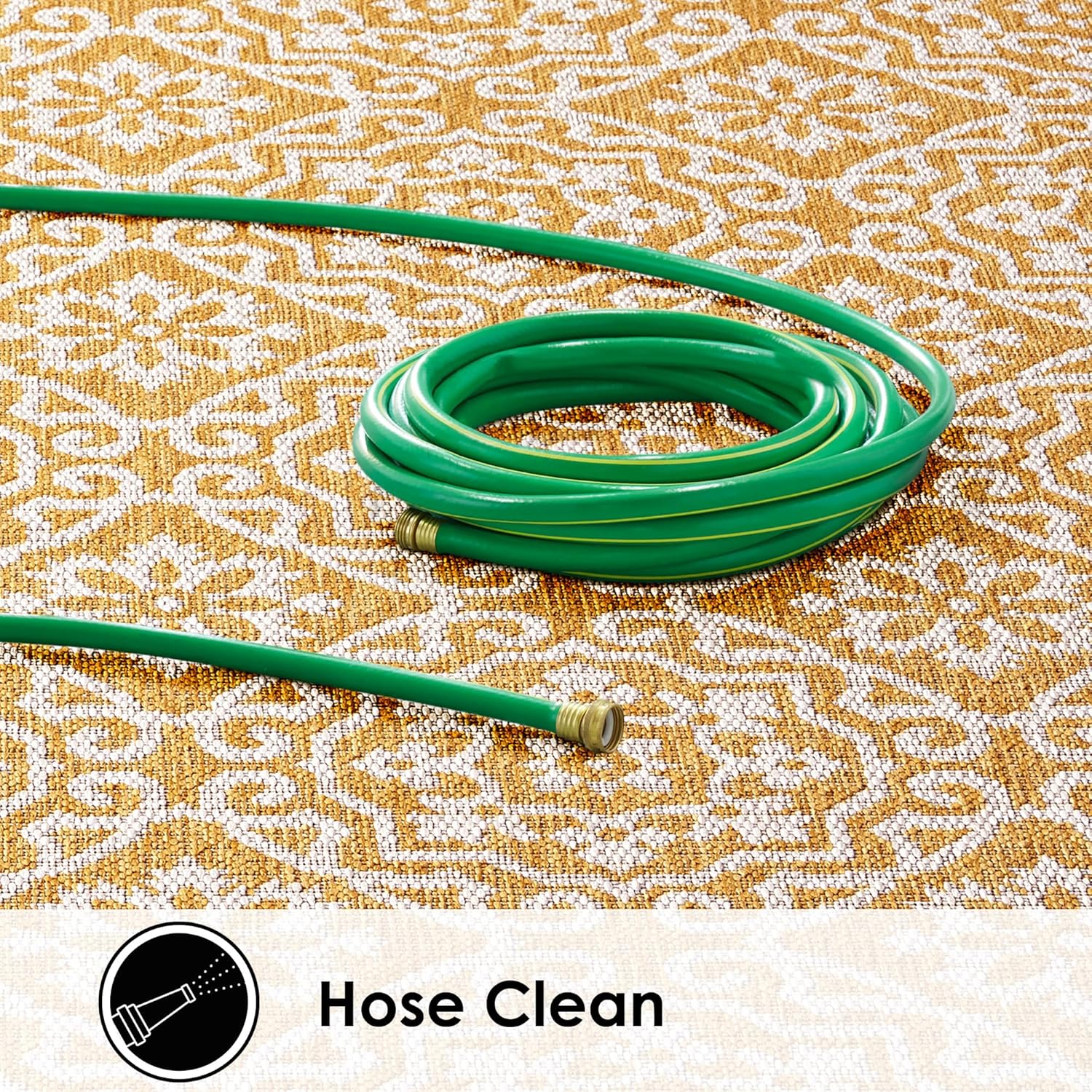 Nicole Miller New York Patio Country Julia Transitional Geometric Indoor/Outdoor Area Rug, Yellow/White, 7'9"x10'2"