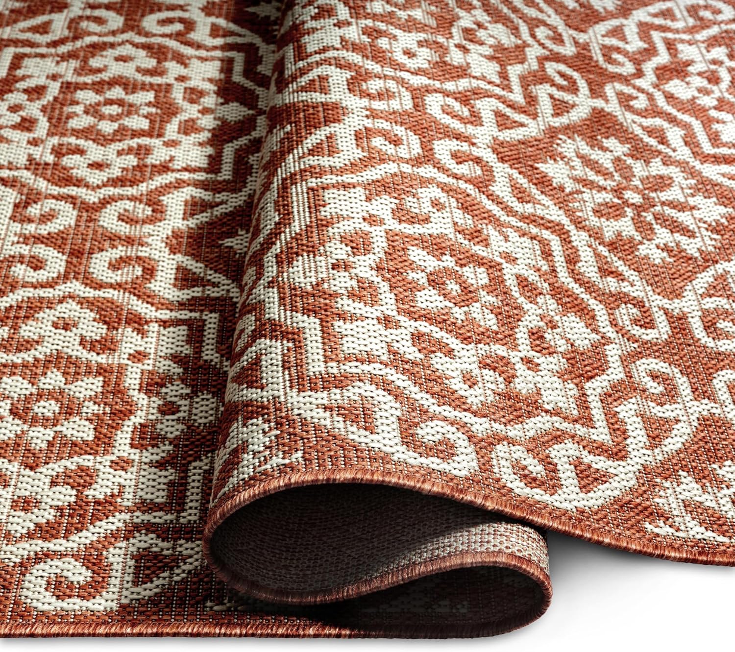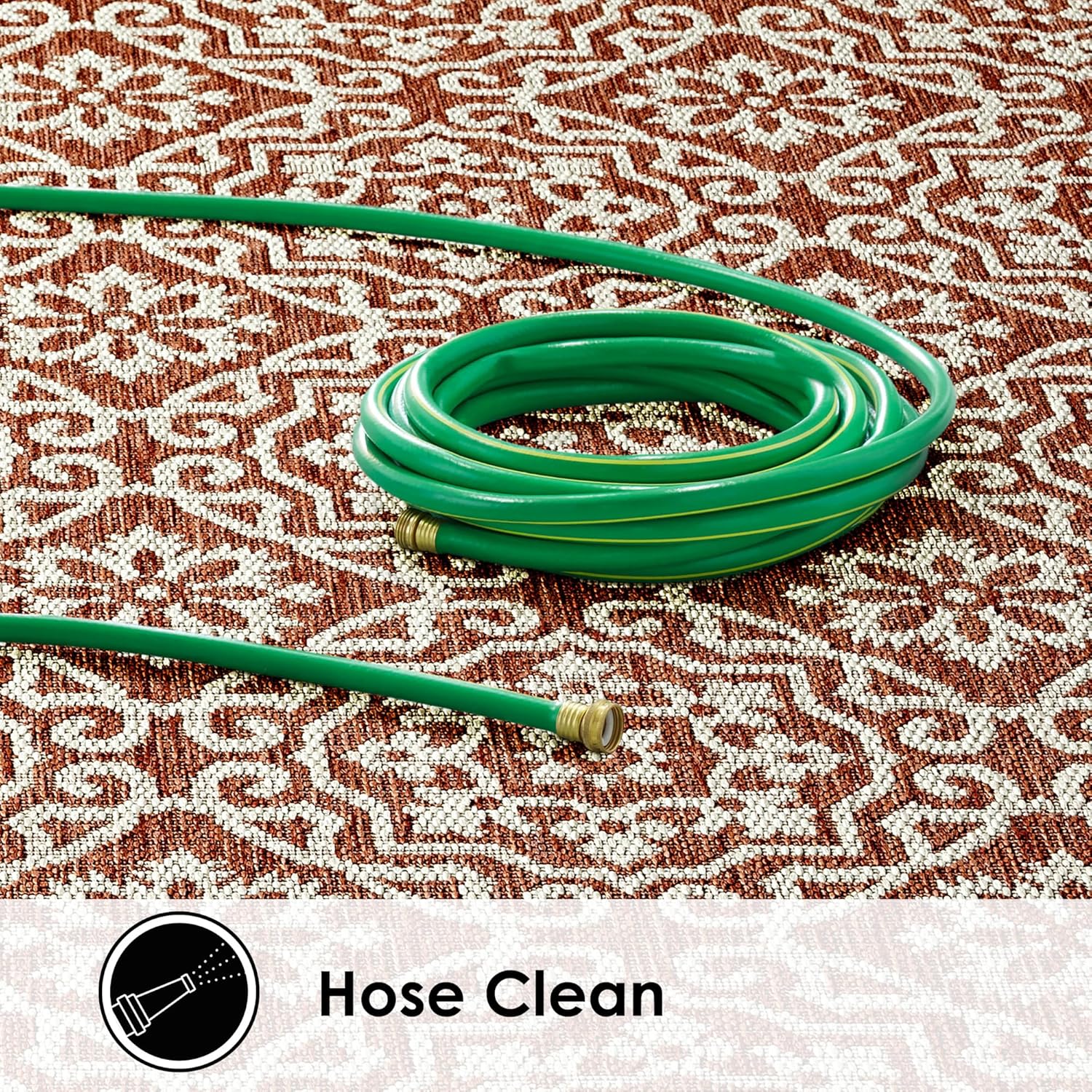 Nicole Miller New York Patio Country Julia Transitional Geometric Indoor/Outdoor Area Rug, Terracotta/Ivory, 5'2"x7'2"