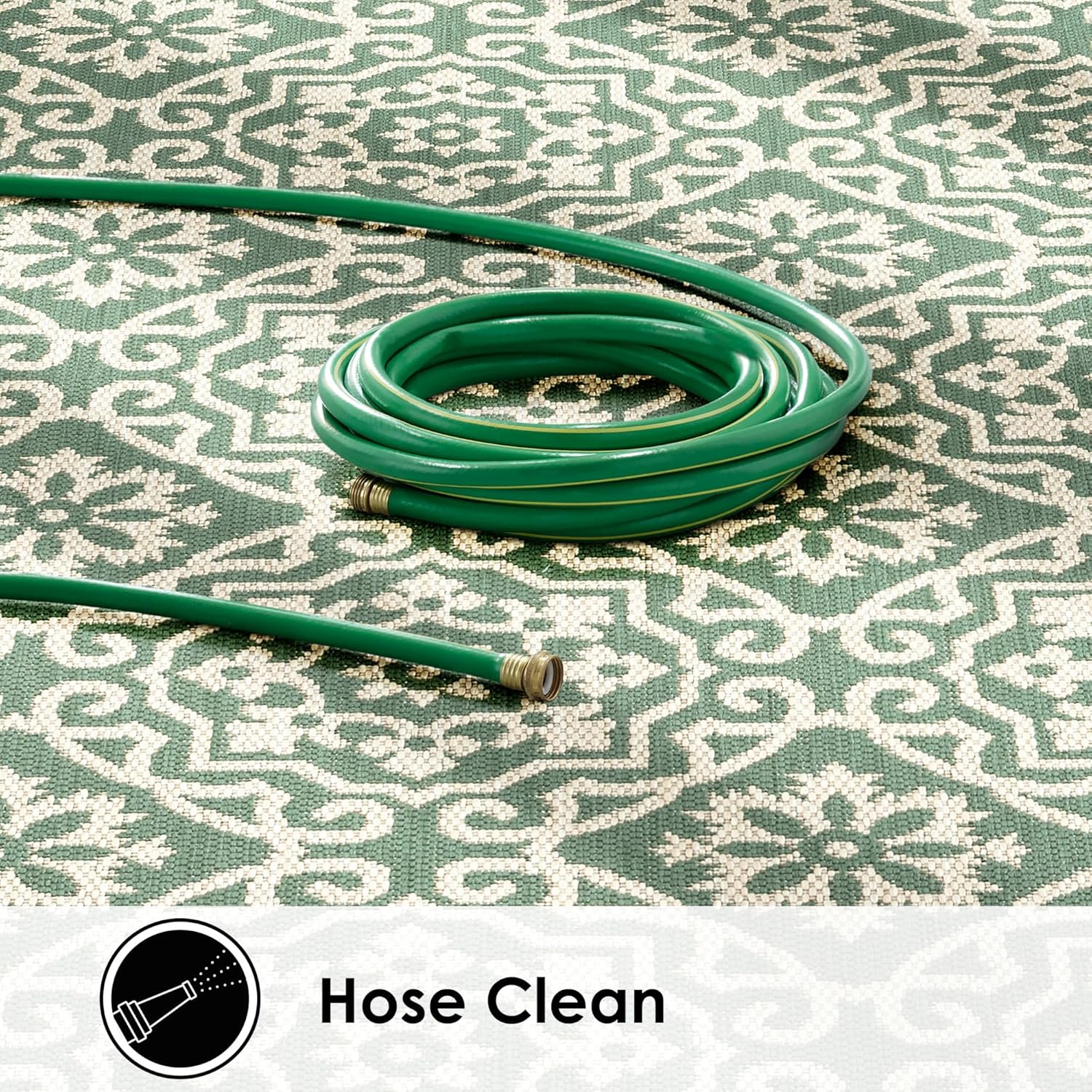 Nicole Miller New York Patio Country Julia Transitional Geometric Indoor/Outdoor Area Rug, Green/Beige, 5'2"x7'2"