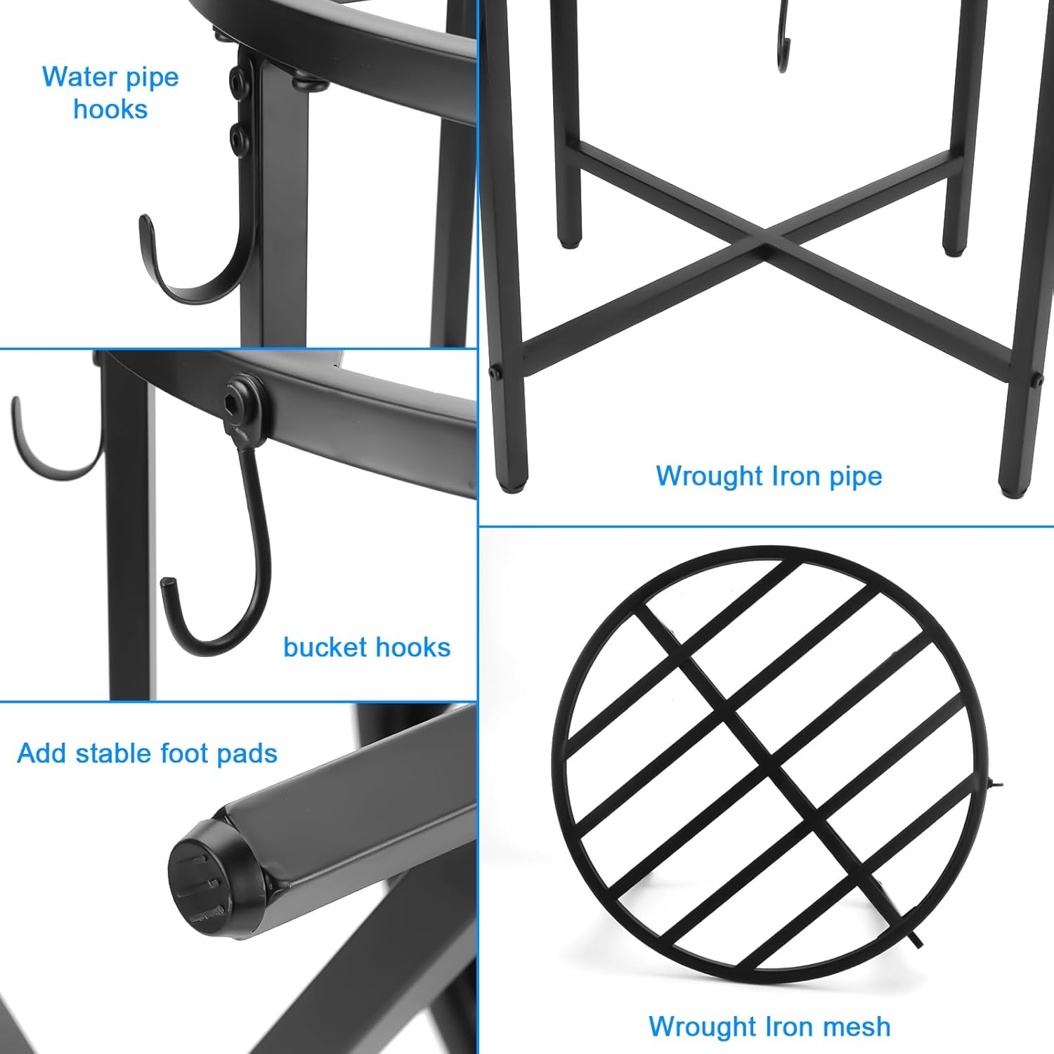 - 【Heavy-Duty Wrought Iron – Stronger Than Stainless Steel】Made from thick wrought iron with a premium powder-coated finish, this stand offers greater strength than stainless steel and excellent rust resistance. Built to support heavy loads and withstand harsh outdoor conditions without bending or corroding