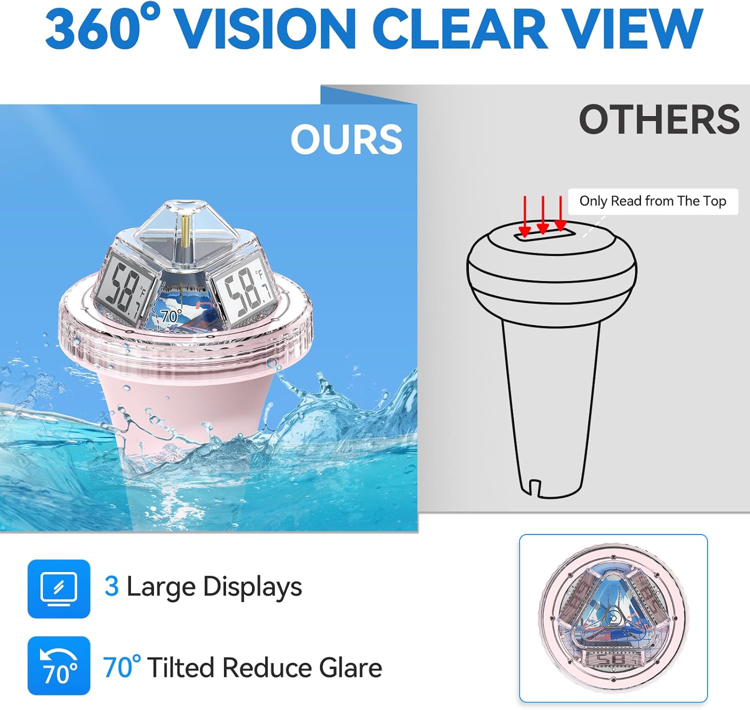 - 【Macaron Eye-Candy Colors】Step into a world of vivid blues and playful pinks. This RAINPOINT dopamine-hued pool thermometer is not just a device—it’s the ultimate summer fashion choice for your pool. Every glance at its eye-catching hues will spark joy, making it a right decoration for every pool party.