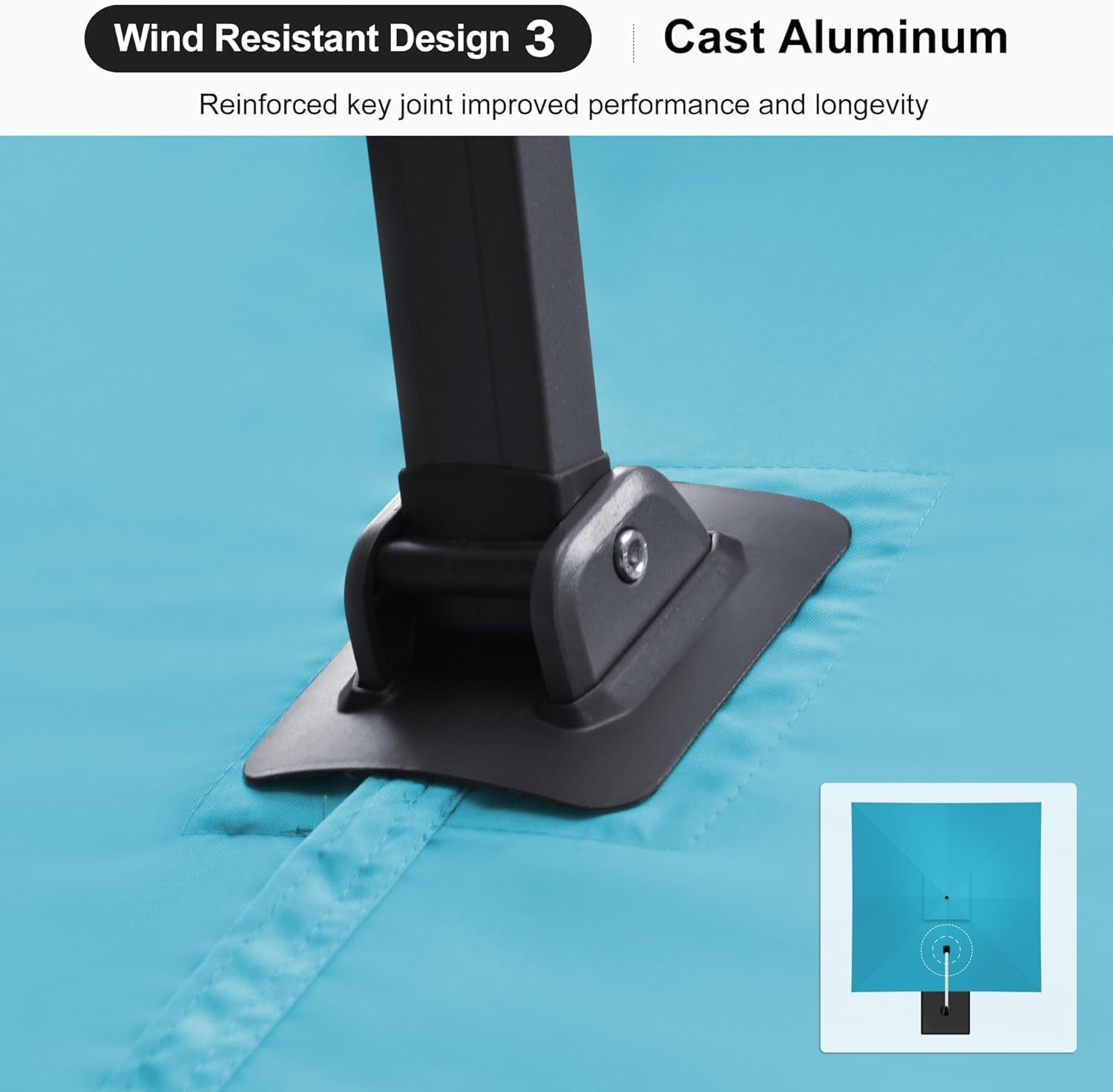 PURPLE LEAF 10' X 13' Outdoor Cantilever Umbrella Large Patio Hanging Double Top Rectangle Tilting Offset Umbrella with 360-degree Rotation for Outdoor Patio Pool Deck Turquoise Blue