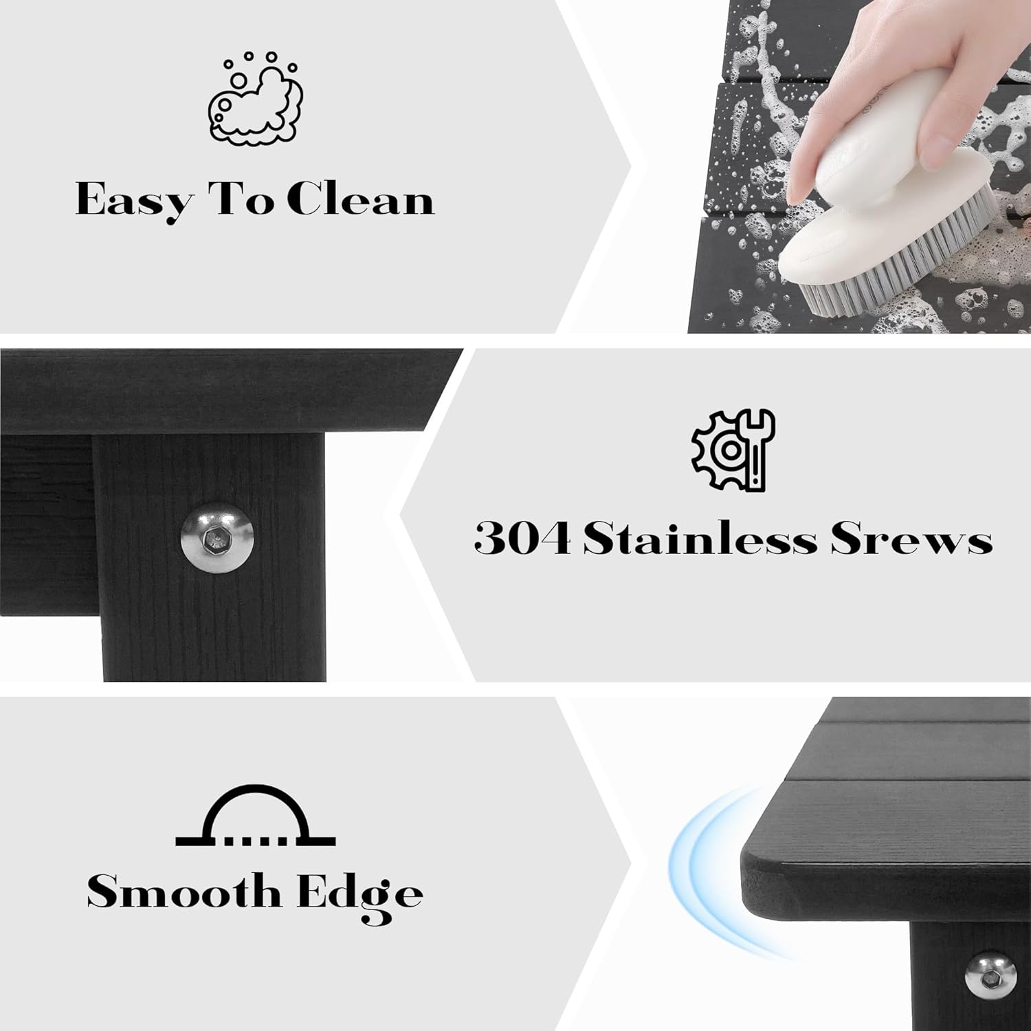Outdoor Side Table, Small Adirondack Side Table for Adirondack Chair - Indoor Outdoor End Table - HDPS (Black)