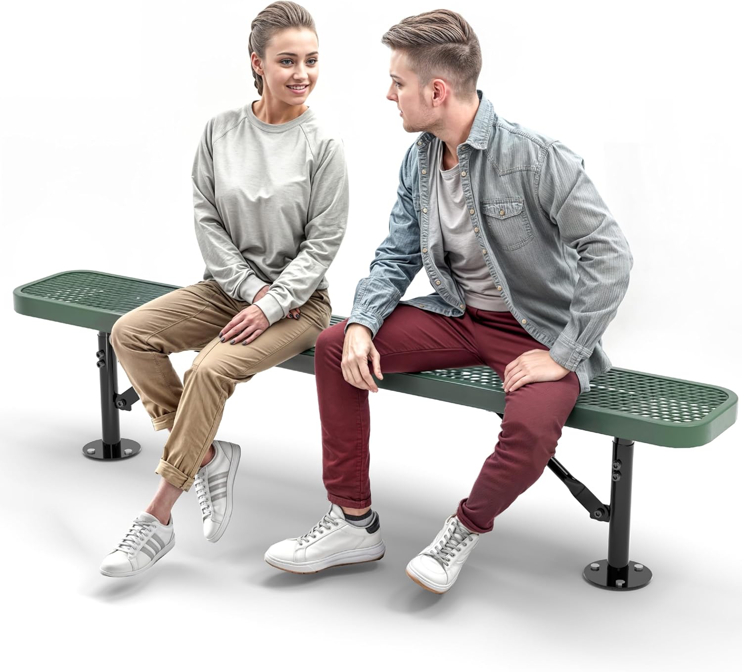 Heavy-Duty Outdoor Metal Bench, Thermoplastic-Coated, Surface, Weatherproof, Commercial-Grade for Parks, Gardens, Patios, Stores & More (6 Ft - Surface, Green)