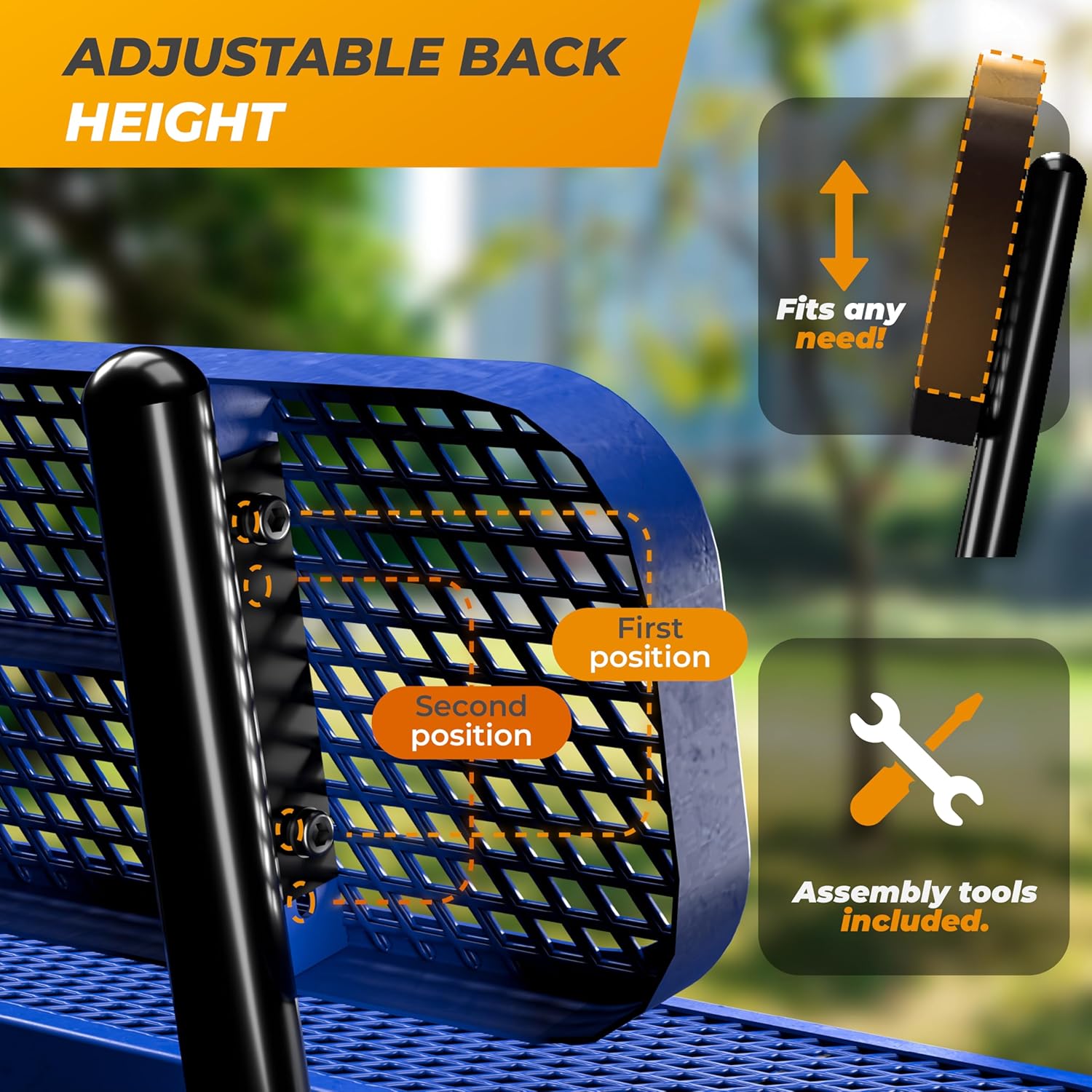 - Weather-Resistant & Easy to Maintain: Commercial-grade steel with thermoplastic coating, black powder finish, diagonal reinforcement bars, and industrial legs resists rust, corrosion, and UV damage year-round.