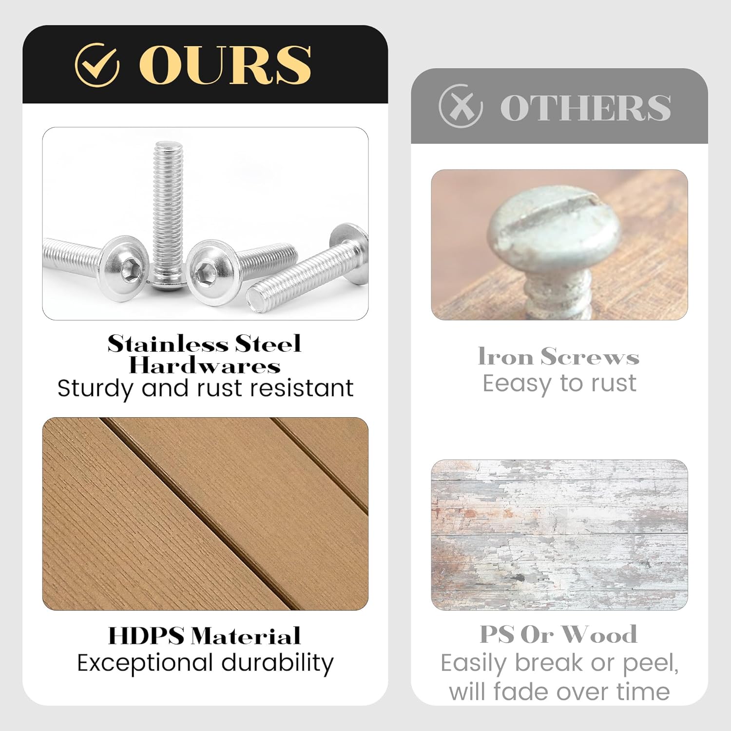 - 【Low Maintenance Costs】: Effortless to clean—just use soap, water, a sanding sponge, or a soft brush. No painting, staining, or waterproofing needed, saving you time and upkeep costs.