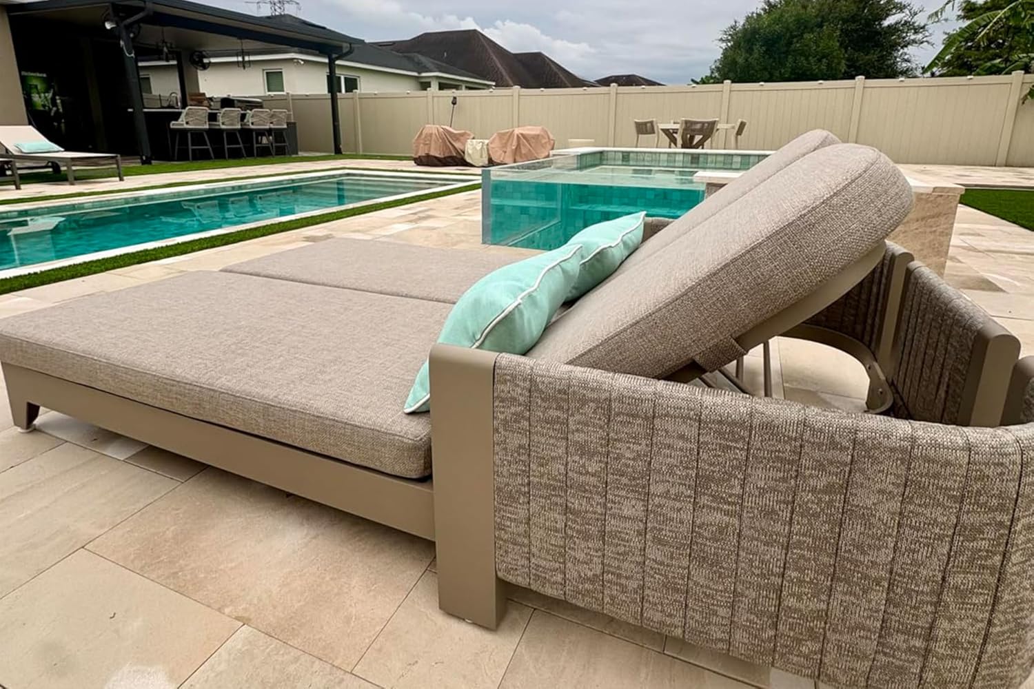 - Lightweight Powder-Coated Aluminum Frame: Featuring a robust aluminum frame with a smooth powder-coated finish, this chaise lounge resists rust and UV rays while ensuring easy upkeep.
