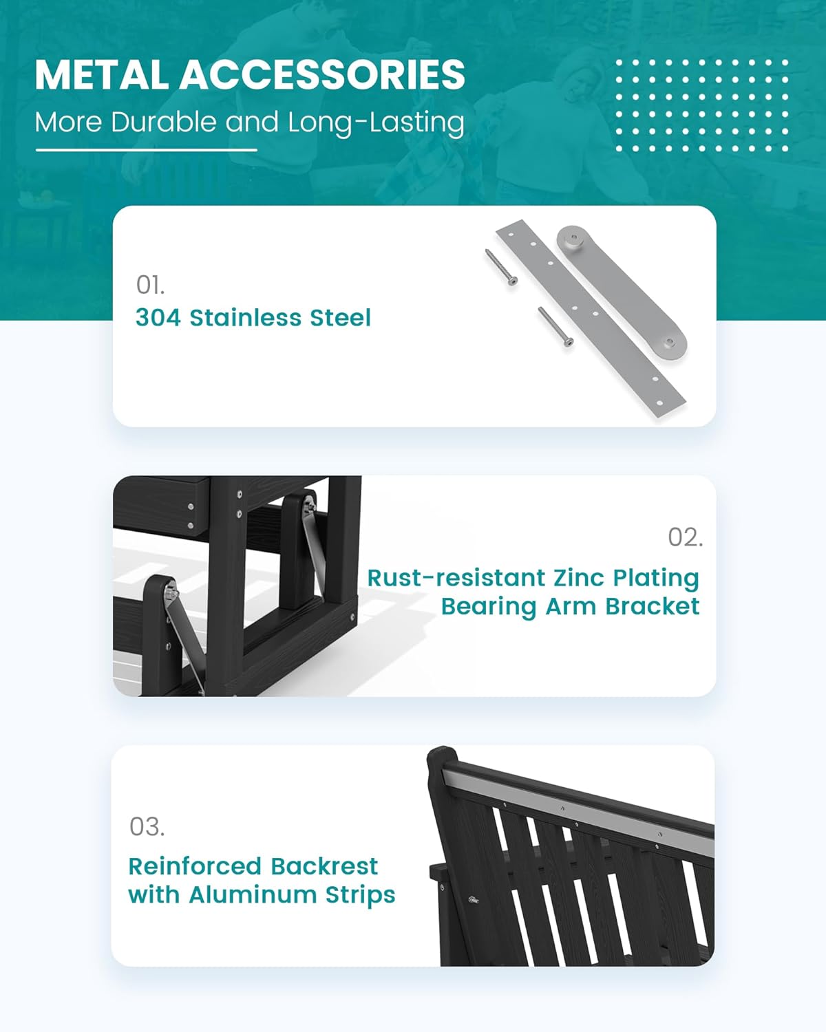 - [Aluminum Bar Reinforcement] The SERWALL Outdoor Rocking Chair is built to last, with sturdy aluminum reinforcement on the backrest and legs ensuring the comfort of the chair while also considering its durability. The reinforced chair is more durable and resistant to deformation, ensuring long-term outdoor use.