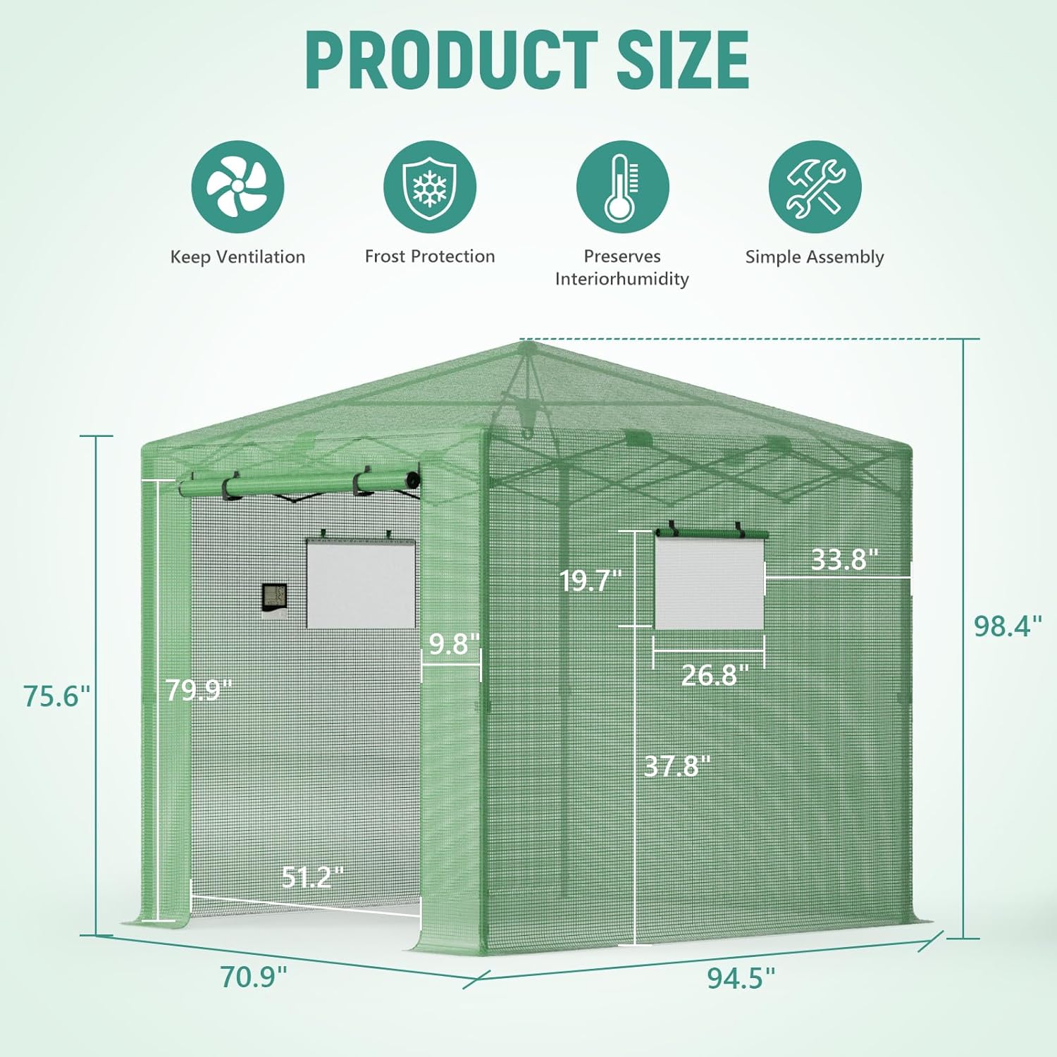 Pop Up Greenhouse 8x6FT, Pop Up Green House for Outdoors, Portable Greenhouses, Walk-in Greenhouses, Popup Greenhouse Kit, Easy Set Up