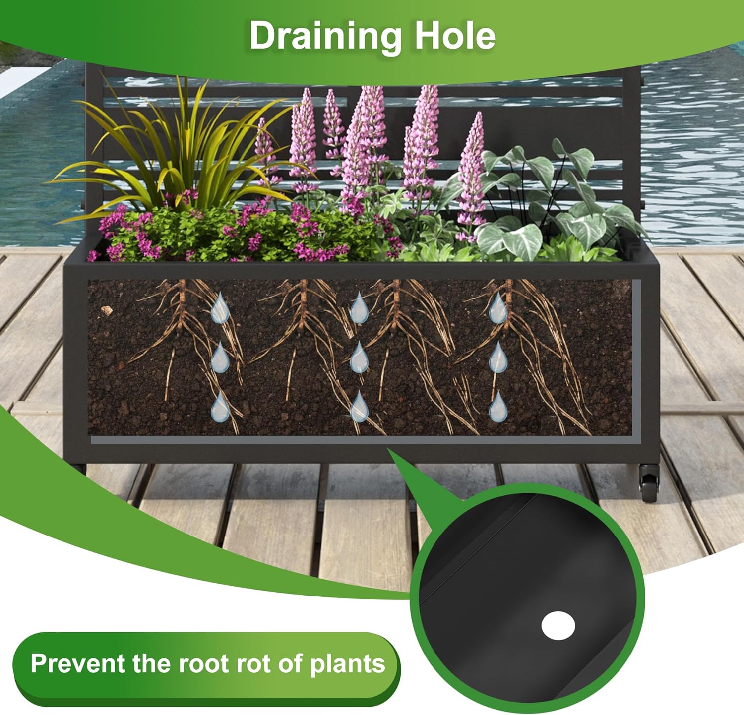 - Convenient Mobility: Equipped with smooth - rolling wheels, you can easily move this planter box around your garden. Whether you need to adjust its position for better sunlight exposure or rearrange your outdoor space, the wheels offer effortless transportation, allowing you to optimize the growth environment for your plants.