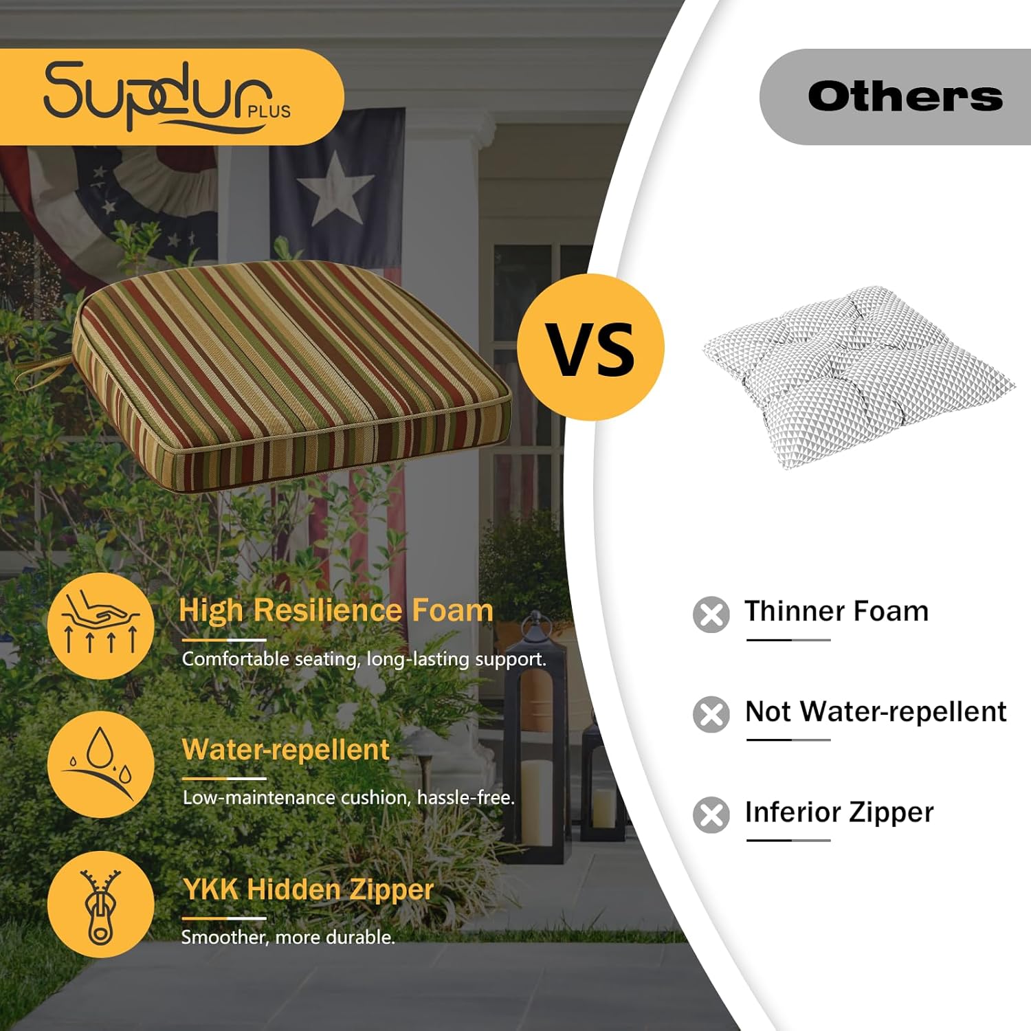- Non-slip Ties & Piped edge: There are 2 straps on each side of the outdoor furniture cushions to keep stable and feature piped edges for a polished look and superior durability.