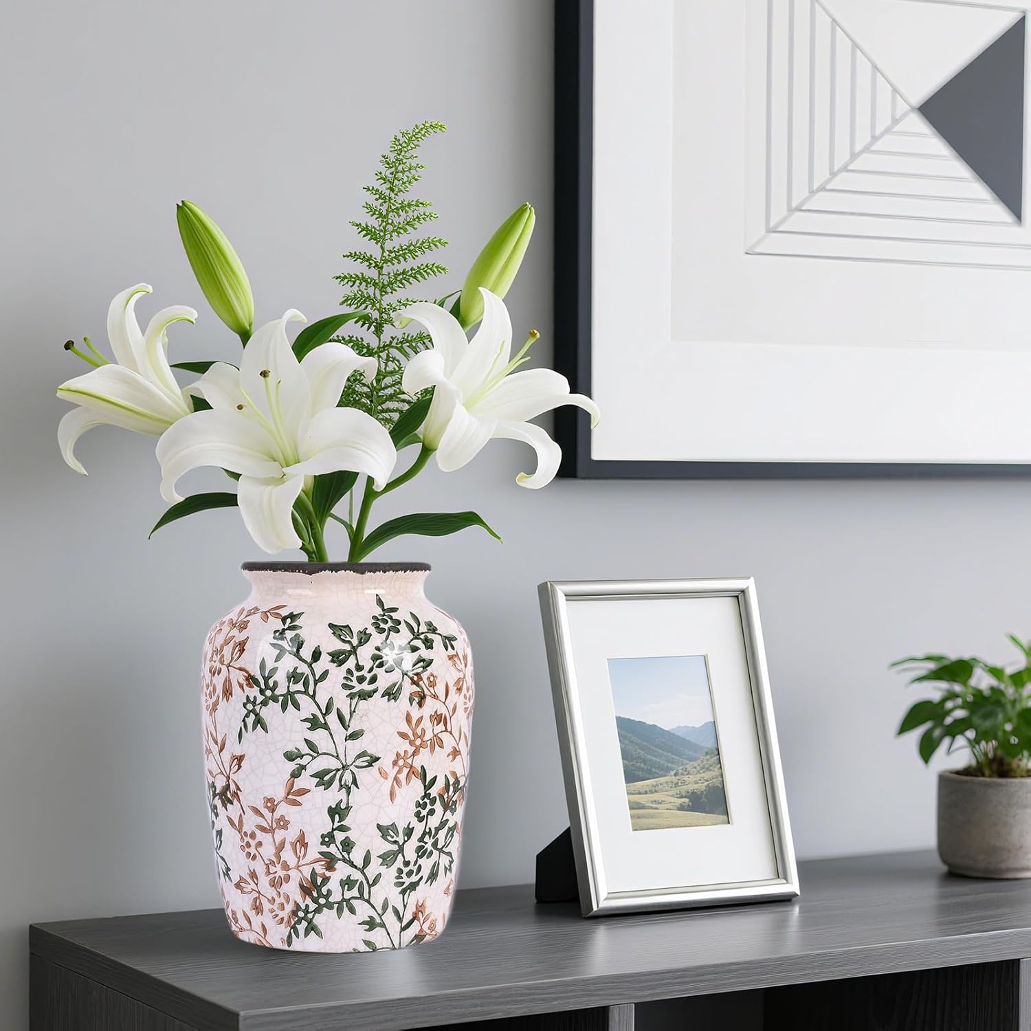 - Rustic flower vase: This porcelain vases measures approximately: 8.3 inches high, 5.5 inches in diameter/21*14 cm, can be used to display fresh or artificial flowers on shelves, mantels, tables or other surfaces, adding charm to living rooms, dining rooms, bedrooms, etc.