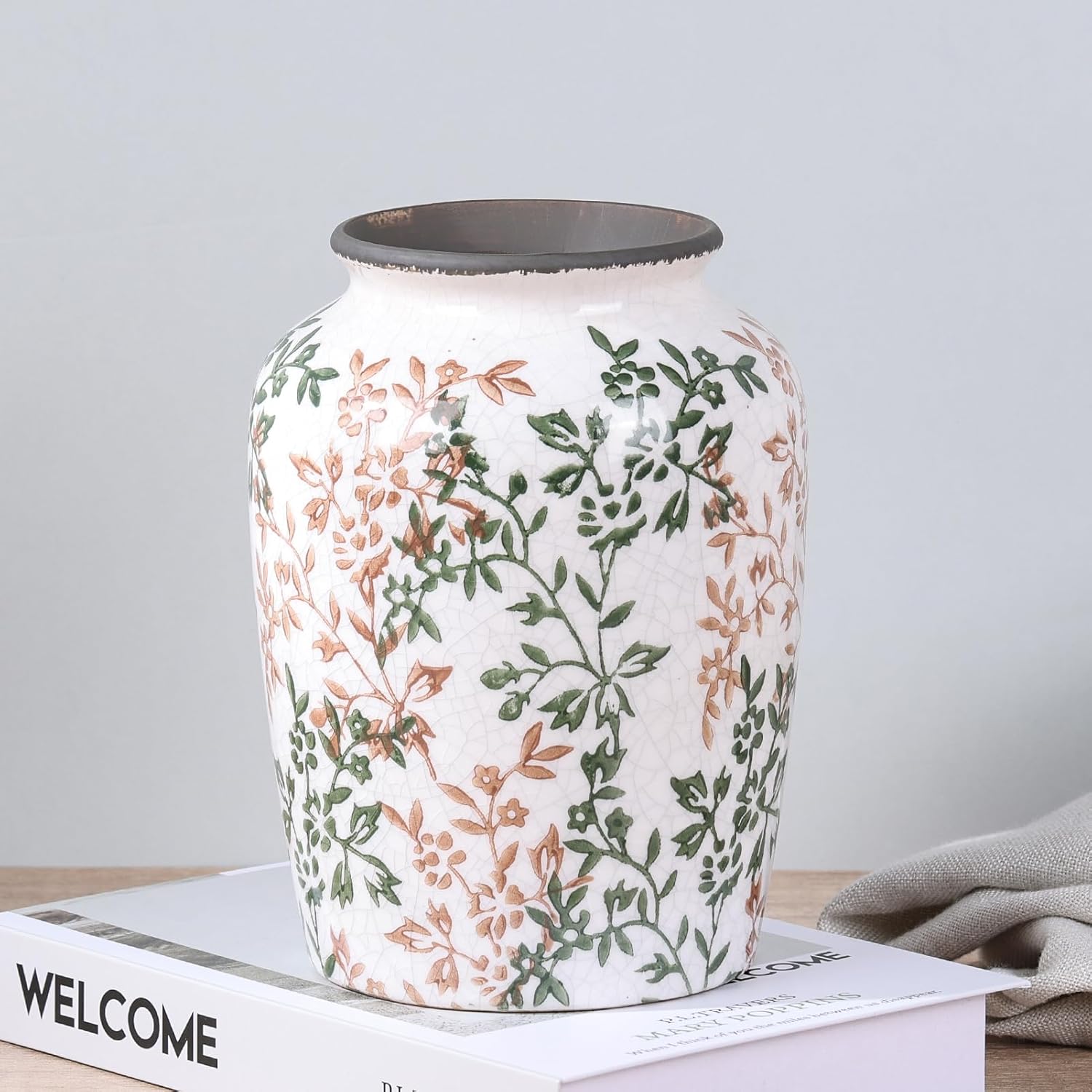 - Vintage floral vase: This floral print ceramic vase is designed in a vintage country style, inspired by antique flower pots, featuring delicate hand-painted floral patterns and enamel decorations, embellished with different bouquets against a rough background, giving it a warm feeling.