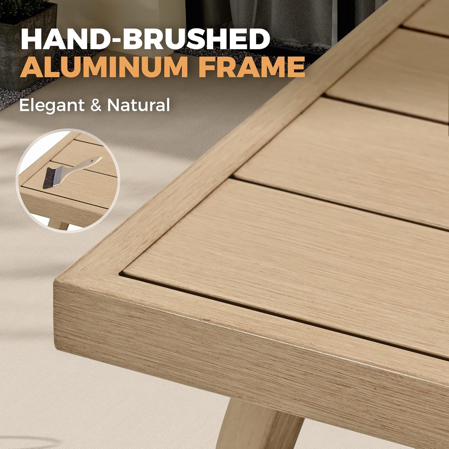 HAPPATIO Outdoor Dining Table for 8, Aluminum Rectangle Outdoor Dining Table with Umbrella Hole, All-Weather Aluminum Patio Dining Table for Garden Yard Poolside, Only Table, Beige