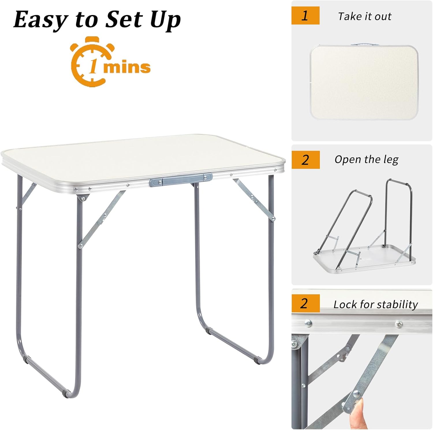 Outvita 2.3ft Portable Folding Camping Table, Outdoor Waterproof Picnic Table, Aluminum Lightweight Suitcase Foldable Table for Picnic BBQ Beach Dining