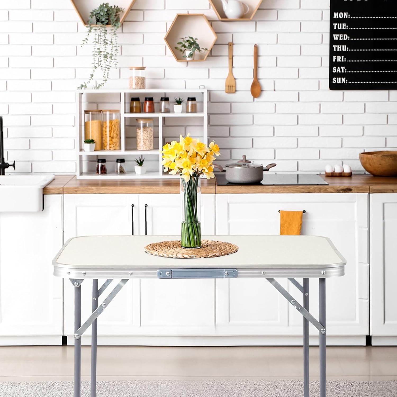 - 【INDOOR & OUTDOOR USE】This folding aluminum table designs for a small area that is ideal for family reunions, picnics, camping trips, buffets, barbecues, fishing, beach and sports events. This foldable metal table is also suitable for indoor use as a serving table, game table, laptop desk, patio table or work and study table