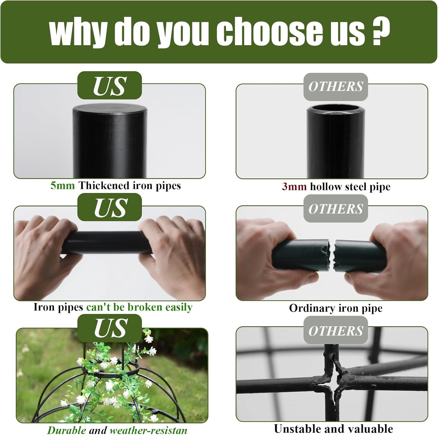 - Elegant Design: The GOOOXIM obelisk trellis showcases an innovative patented design featuring a stunning double-layer sphere and a refined square-pointed structure. Crafted from sleek black metal, it adds a touch of artistic elegance to your garden or home decor.