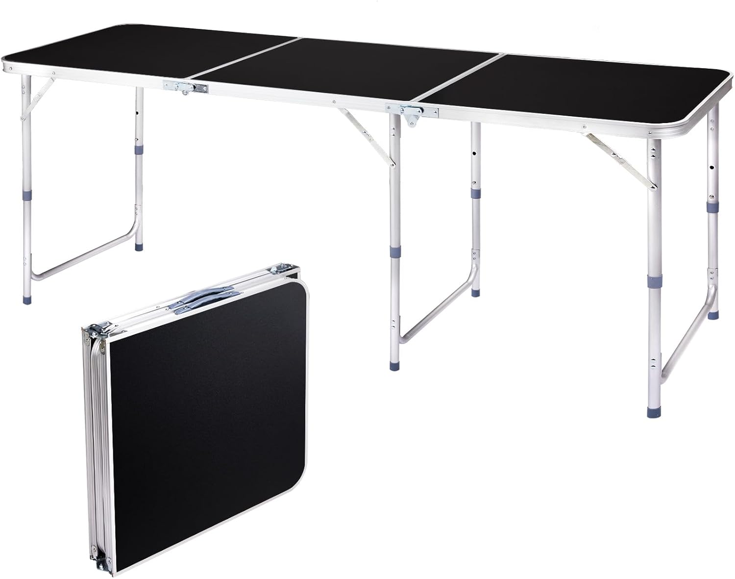 Outvita 6ft Portable Folding Camping Table, Outdoor Waterproof Adjustable Height Table, Aluminum Lightweight Suitcase Foldable Table for Picnic BBQ Beach Dining