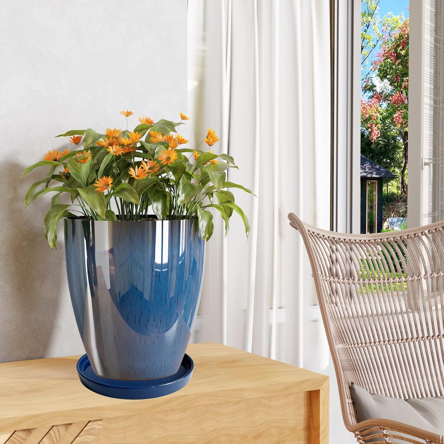 Ceramic Plant Saucer Pot Tray Blue 2pcs-12 Inch, Planter Saucers 4 5 6 7 8 9 10 11 12 Inch for Indoors Outdoor, Durable Sturdy Flower Drainage Tray for Glazed Pots Base (12.5 Inch-Blue)