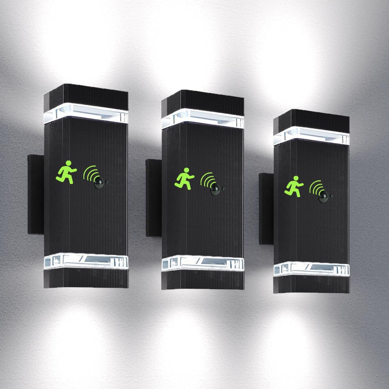 - 1. 🌙 Smart Motion Sensor + Dusk to Dawn: Equipped with an upgraded PIR motion sensor and IC photocell, these motion sensor outdoor wall lights automatically turn on at dusk and off at dawn. the wall lights brighten to 100% when PIR motion sensor detects movement at night, adding extra visibility and security to your front door, garage, or patio.