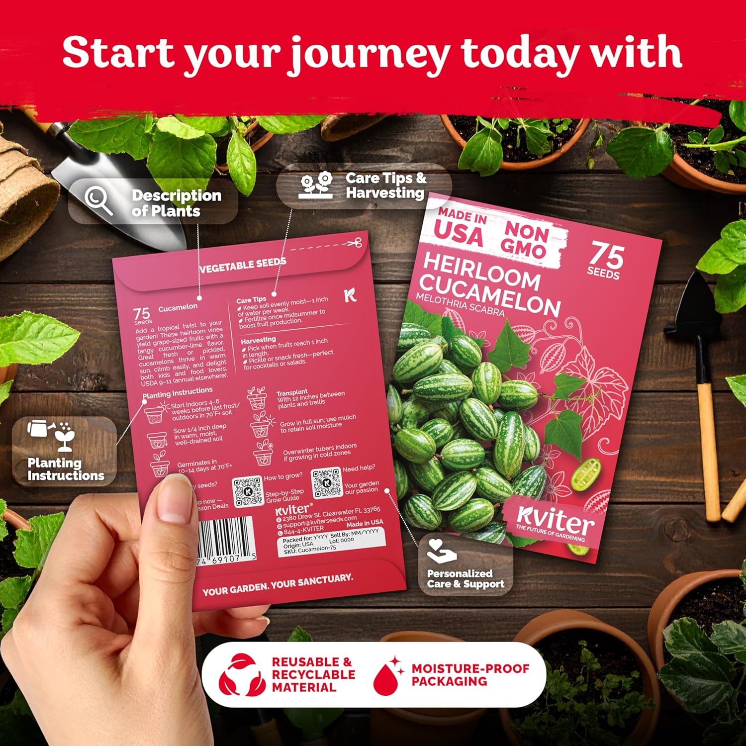 KVITER 75 Cucamelon Seeds for Planting (Melothria Scabra) – Mexican Sour Gherkin Seeds, Gherkin Cucumber, Mexican Mini Watermelon – Heirloom Vegetable Seed for Outdoor & Indoor Garden, Containers
