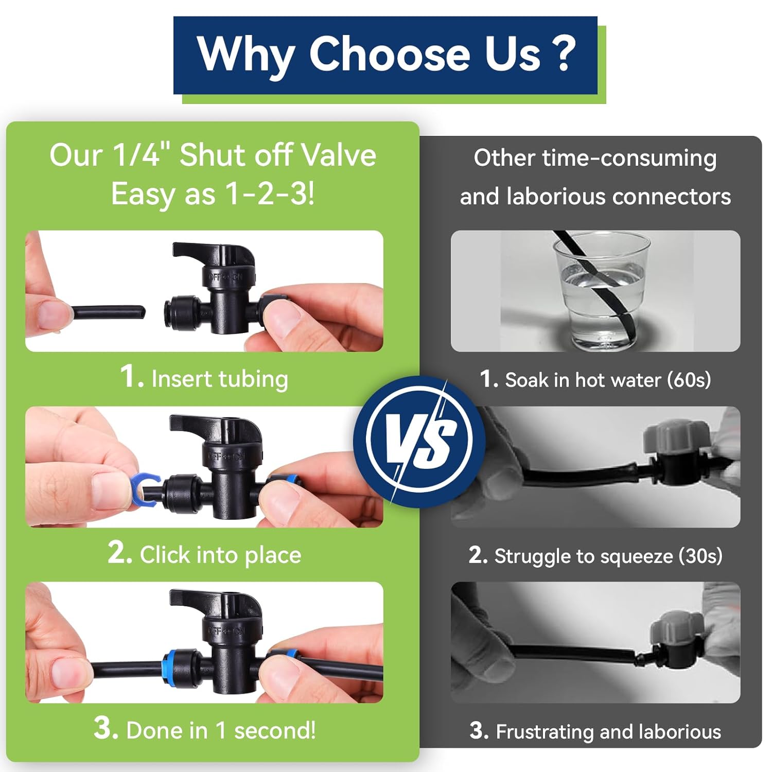 20 Pack 1/4" Drip Irrigation Shut Off Valve, Quick Connect Universal Drip Irrigation Tubing Coupling Valve, Connector Locking Fitting for Sprinkler or Drip Irrigation System