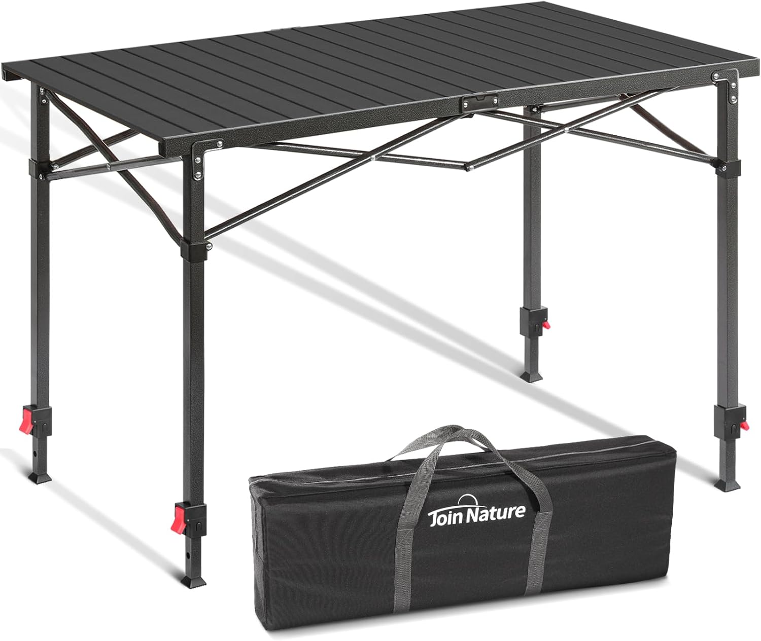 - Extremely Durable: The Join Nature adjustable camp table features a frame made of high-strength painted steel tubes combined with cross-shaped support tubes, and the tabletop is constructed from heavy-duty aluminum sheets. The high-quality materials and construction make our camping table exceptionally strong and durable, with a load-bearing capacity of up to 220 pounds—at least 30% higher than standard tables.