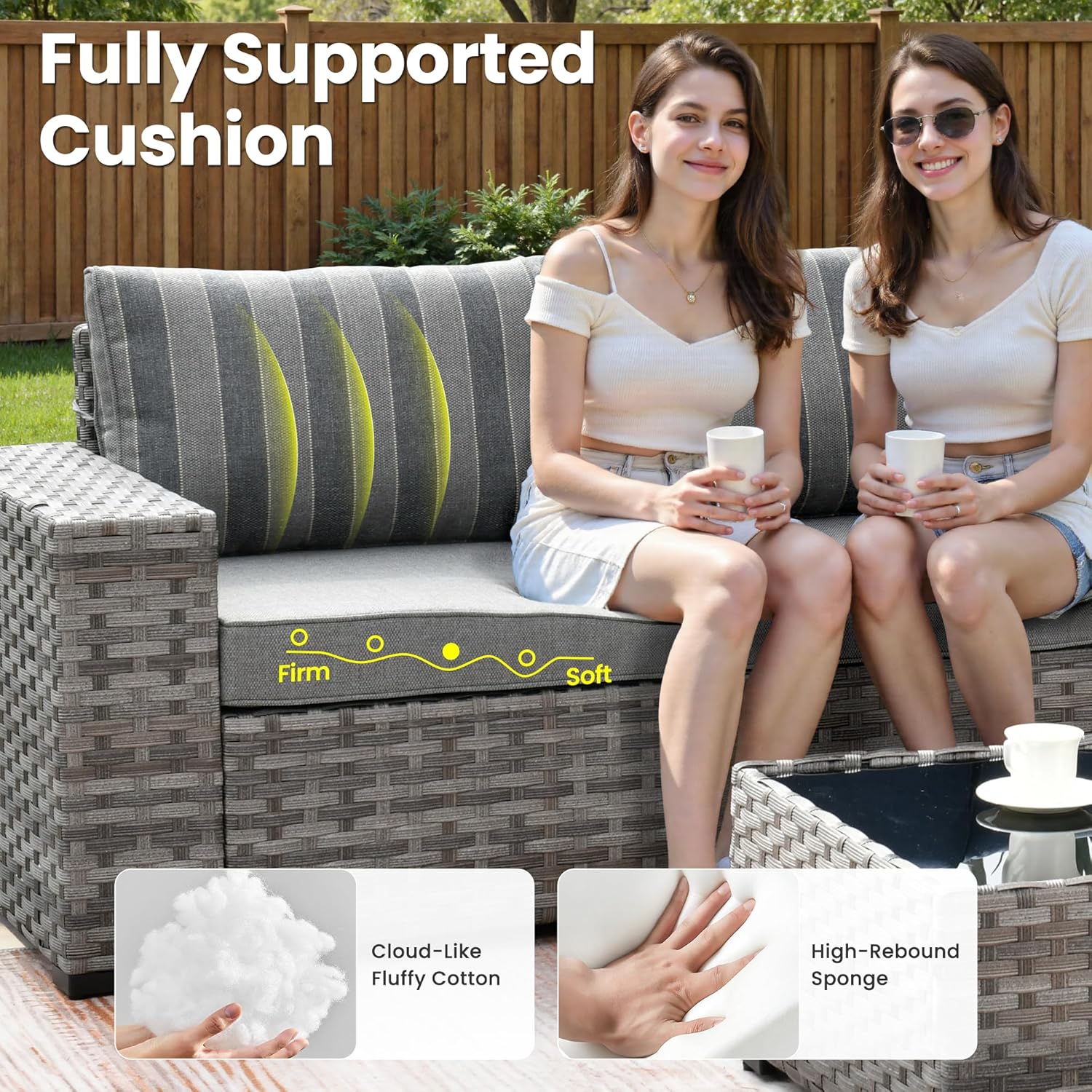 - All-weather Wicker Rattan: Our outdoor sofa sets have very durable PE wicker rattan for all-weather use and a natural texture with good coloring. The high-quality patio seating made of powder coated steel frame ensures good strength and stability