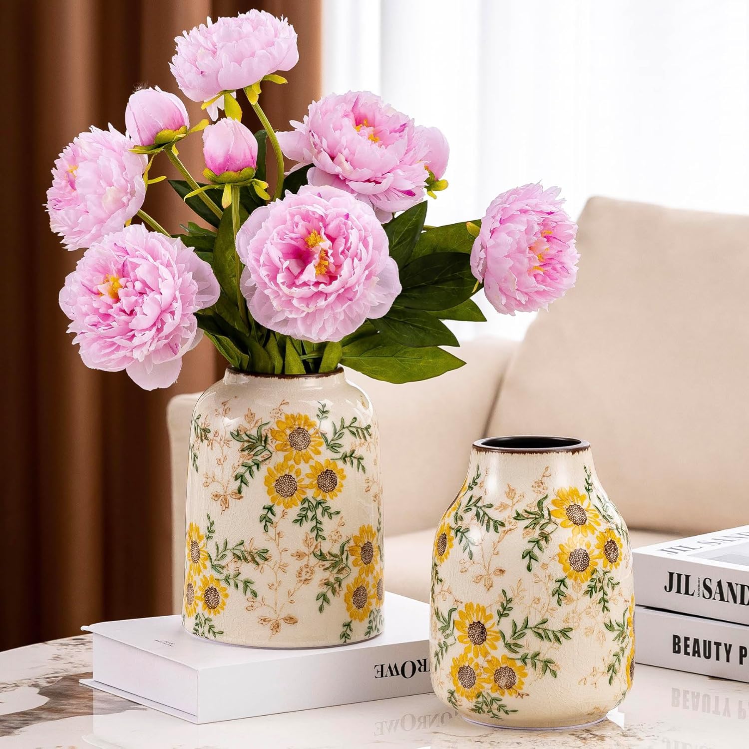 - Multi-Scenario Decorative Accent: From Tuscan-inspired kitchens to grand millennial living rooms, this sunflower vase doubles as standalone art or a vibrant floral holder. Use it for fireplace decor, table settings, entryway accents, or as part of sunflower-themed chinoiserie arrangements. Its cheerful yellow and green palette brightens any corner year-round.