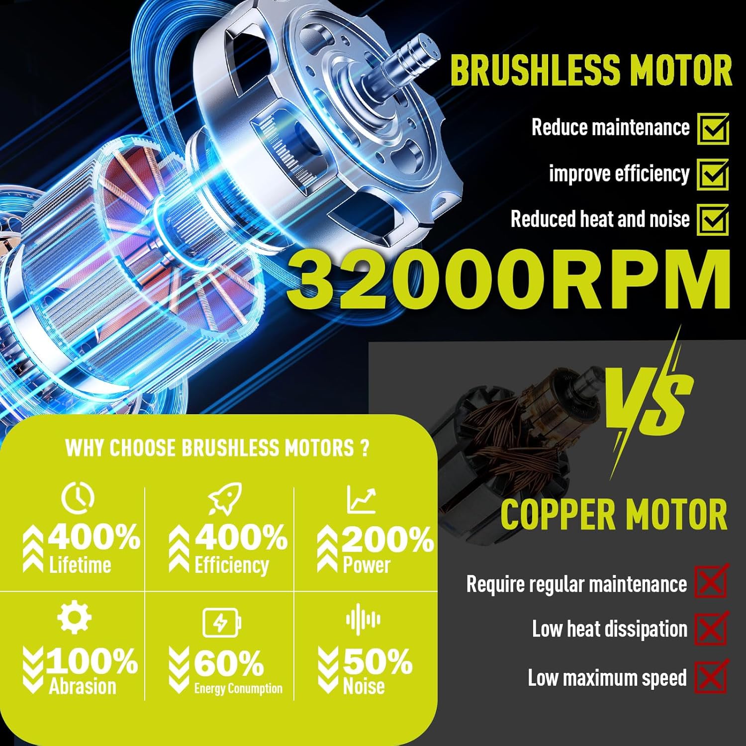 - 【Advanced Axial Fan Technology and High Performance Brushless Motors】: The Sihuird Leaf Blower uses a High Efficiency Brushless Motor, Maximum setting 32000 rpm, Adopting advanced axial fan technology, it provides greater air volume and more heat dissipation than traditional centrifugal fans. And equipped with 12 turbine blades and turbocharging function, providing higher airflow. Air volume and wind speed up to 680CFM and 190MPH.