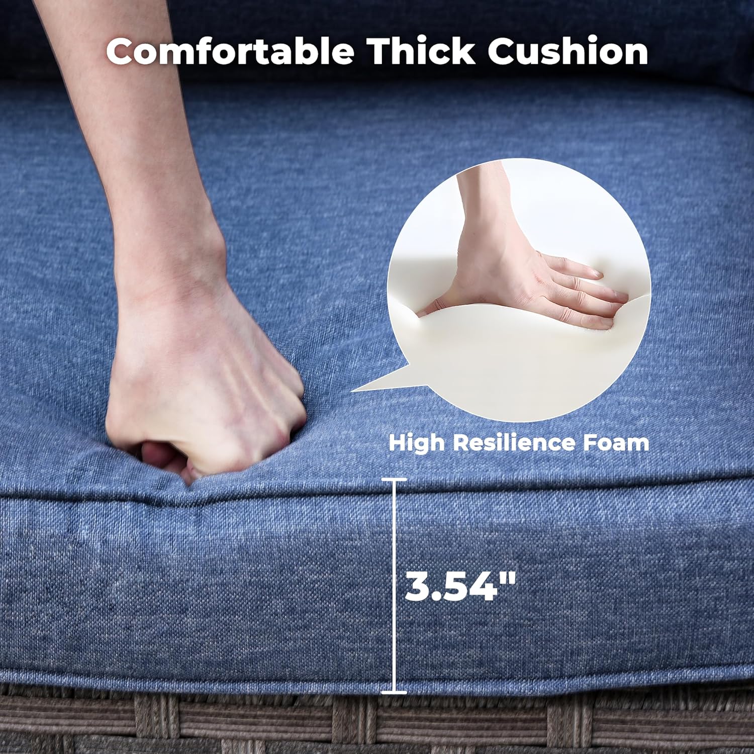 - All-weather Wicker Rattan: Our outdoor sofa sets have very durable wicker rattan for all-weather use and a natural texture with good coloring. The high-quality patio seating made of powder coated steel frame ensures good strength and stability.