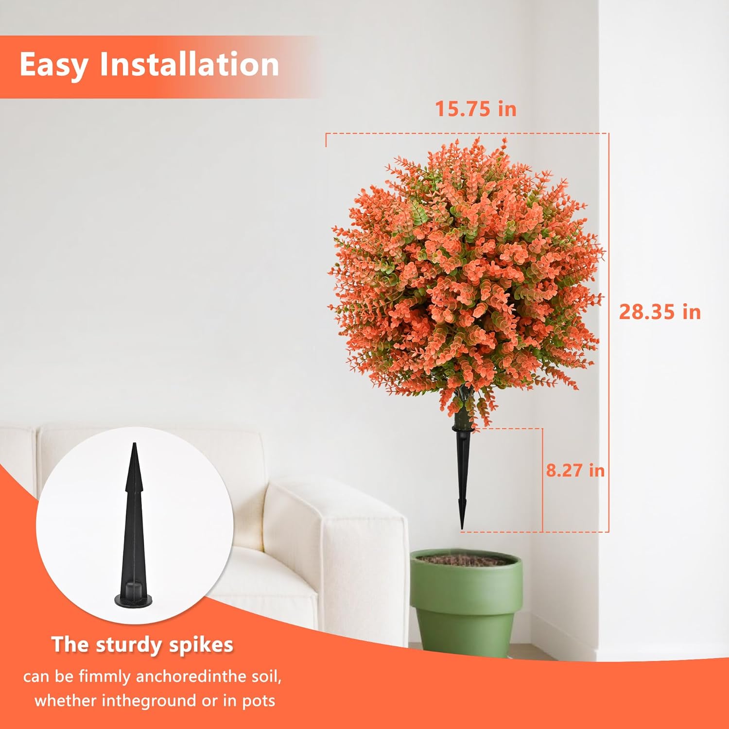 - 🟡 【Stylish with Metal Spike】 – The 28-inch tall artificial topiary comes with a metal spike . adding a cozy autumnal touch to your home, office, or garden decor.