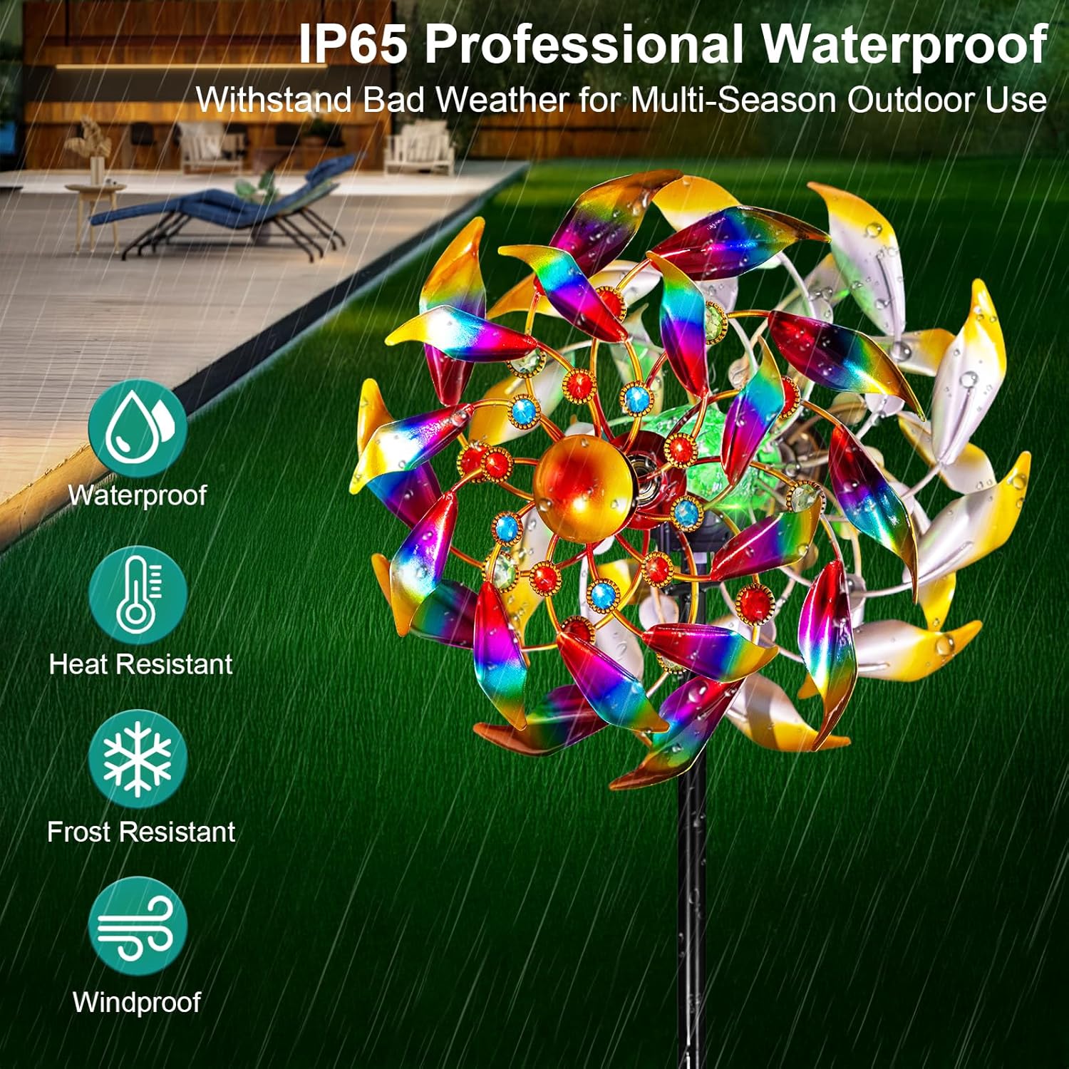 - Special Feature : Adjustable, Kinetic, LED Lights, Rust Resistant, Weather Resistant