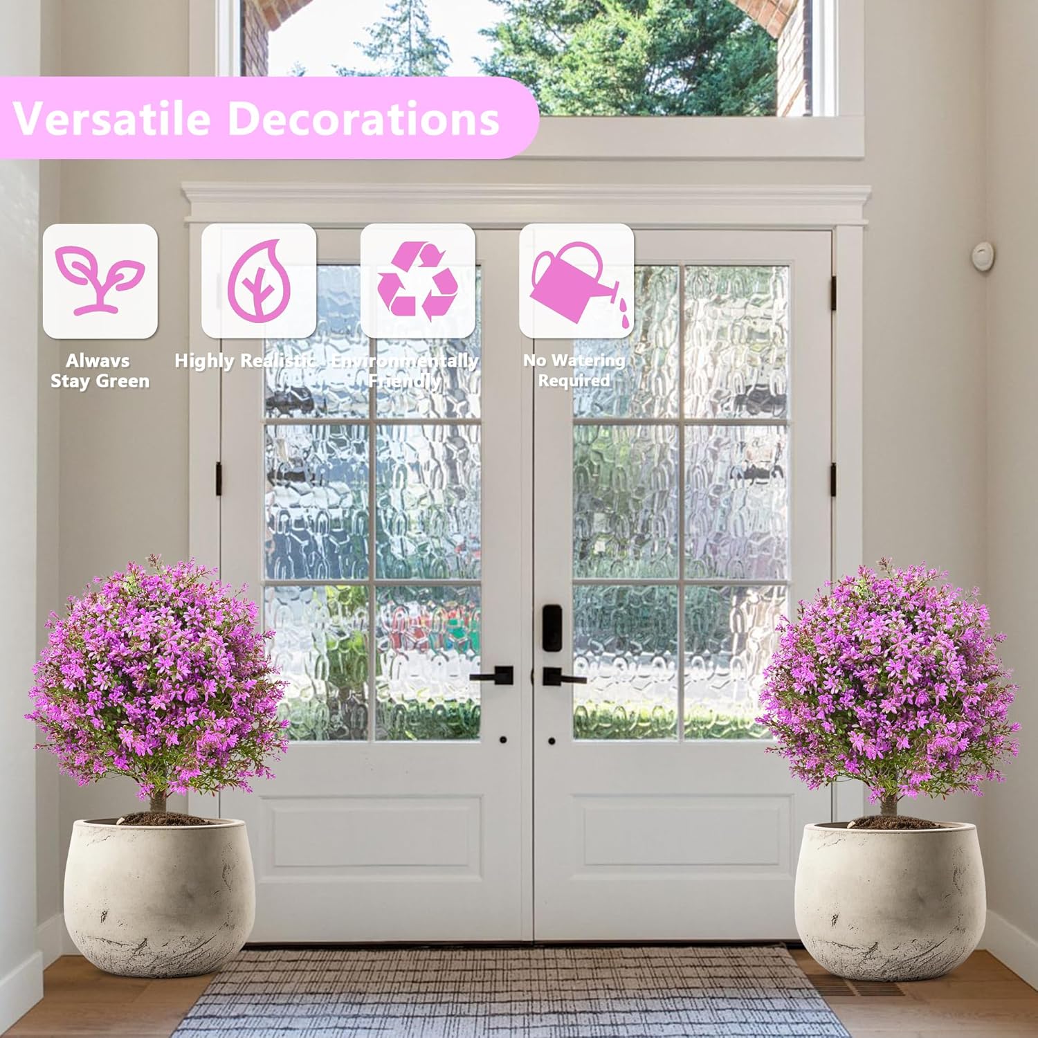 28" Artificial Boxwood Topiary Tree Purple, Set of 2 UV Resistant Fake Evergreen Shrubs Bushes with Ground Spike, Realistic Plants for Outdoor Indoor Front Porch Garden Home Decor