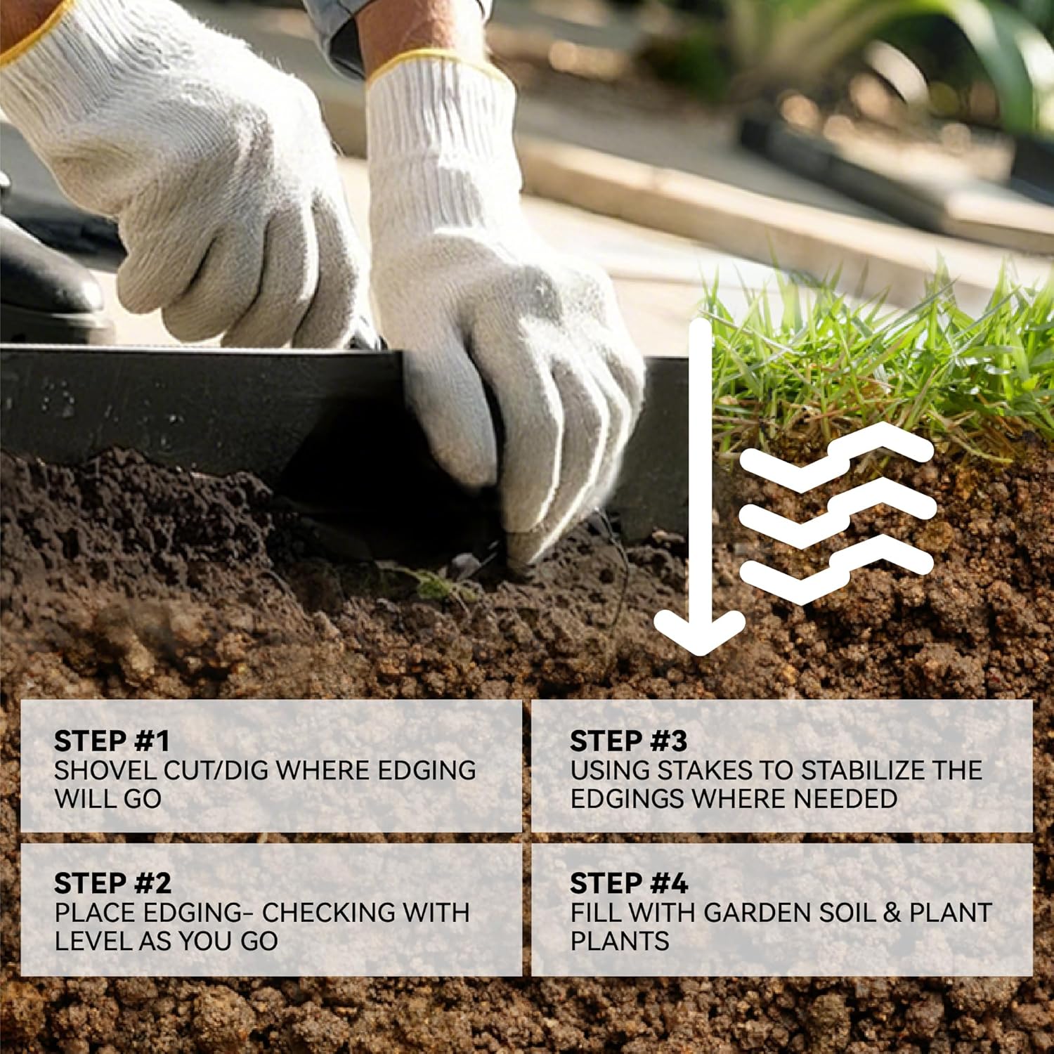 - EASY INSTALLATION: No digging required, simply bend the edges of the bed into the shape you want for your landscape and secure the edges with the included stakes. Save your time and energy .